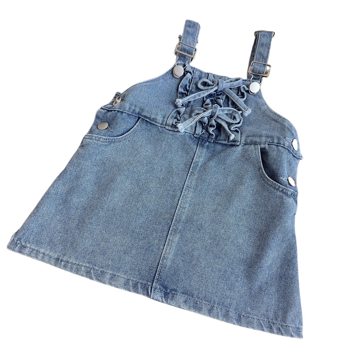 女童牛仔裙2025夏季无袖连衣裙新款小女孩时尚韩系木耳边背带裙