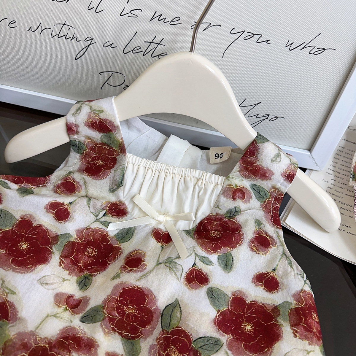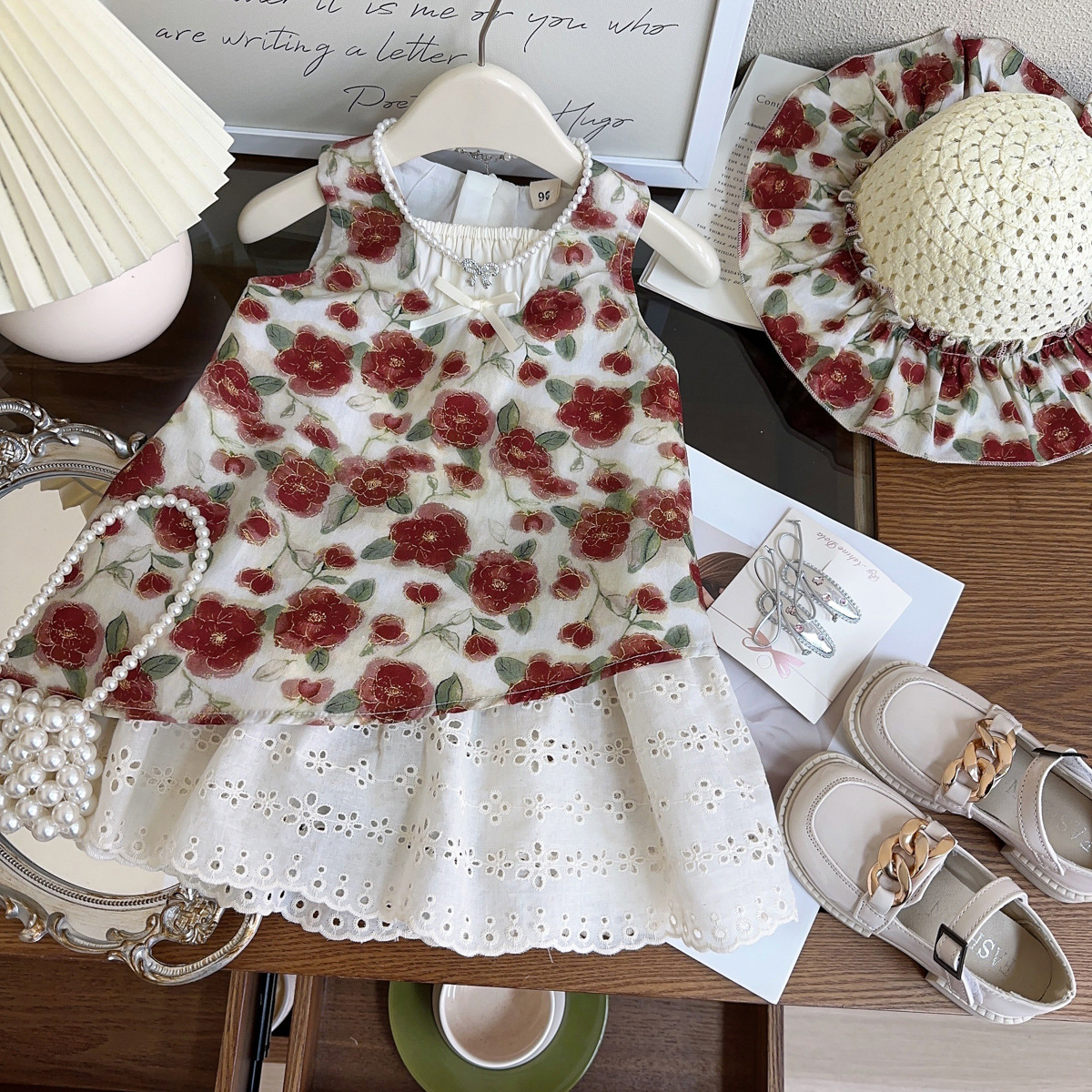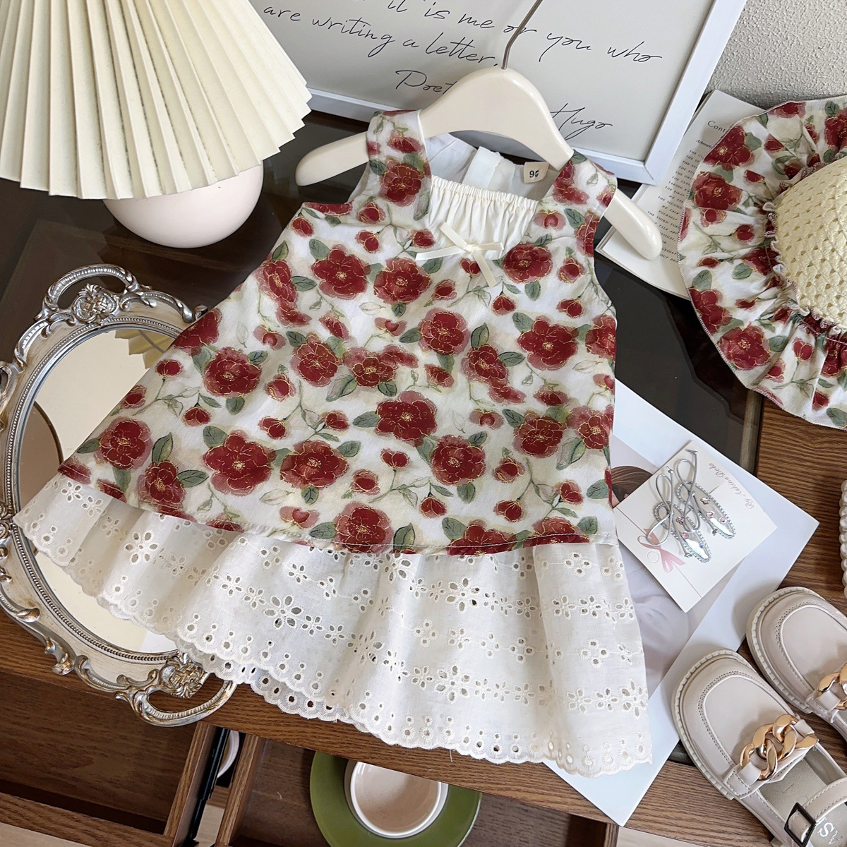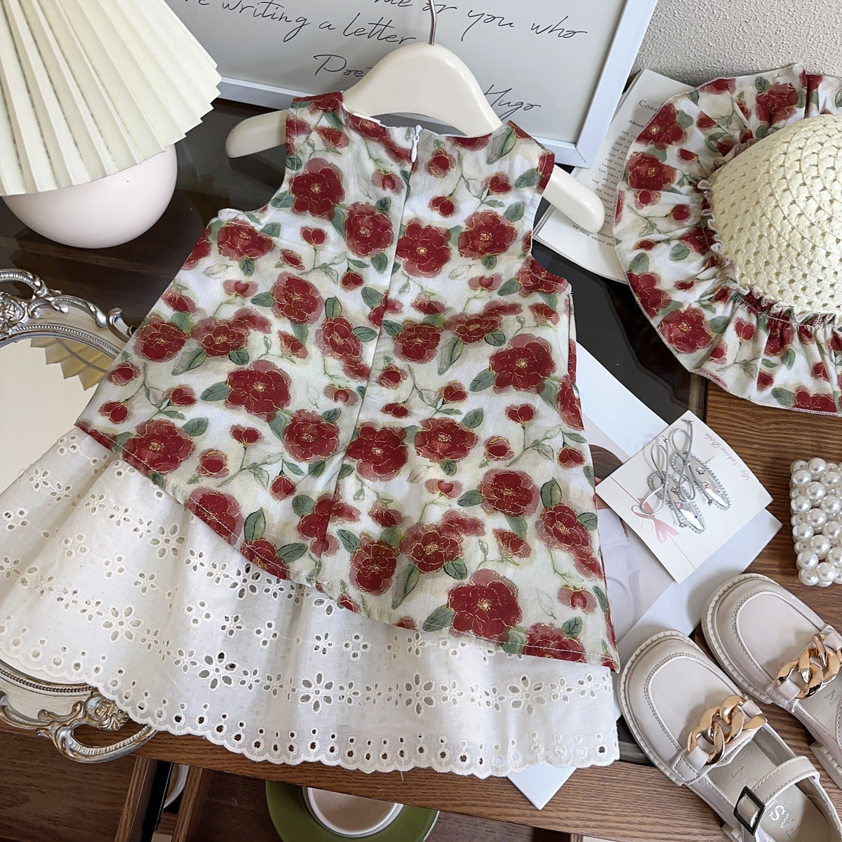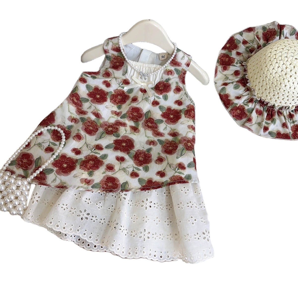 女童连衣裙2025夏季新款小女孩洋气碎花背心裙公主裙送帽子跨境