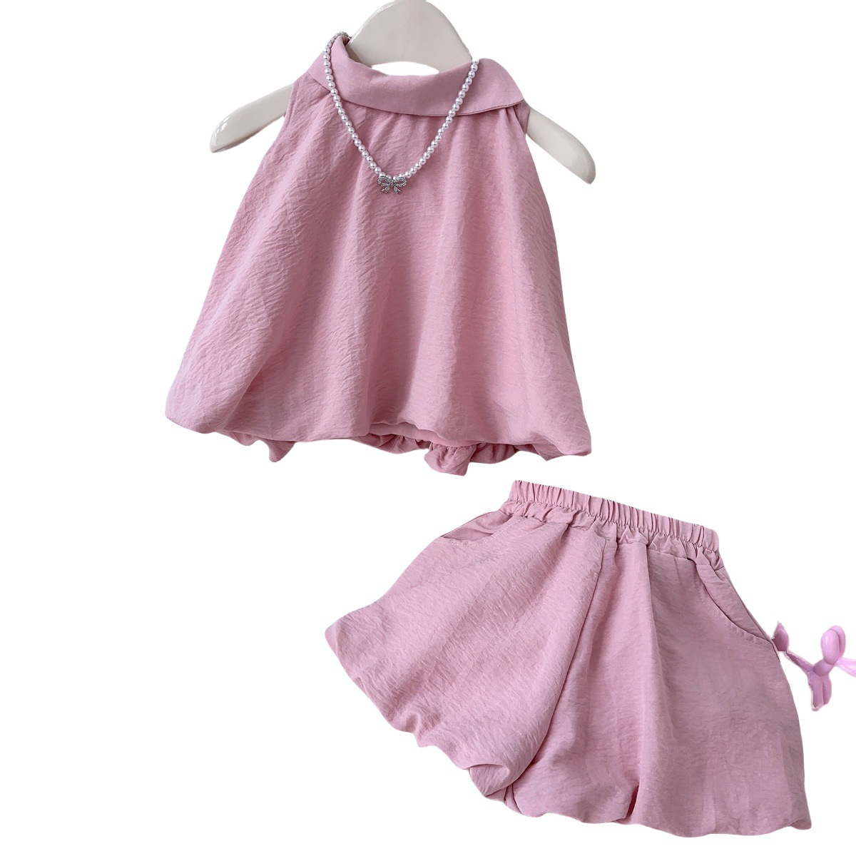 女童套装2025夏季新款无袖背心衬衫+花苞短裤小女孩公主两件套