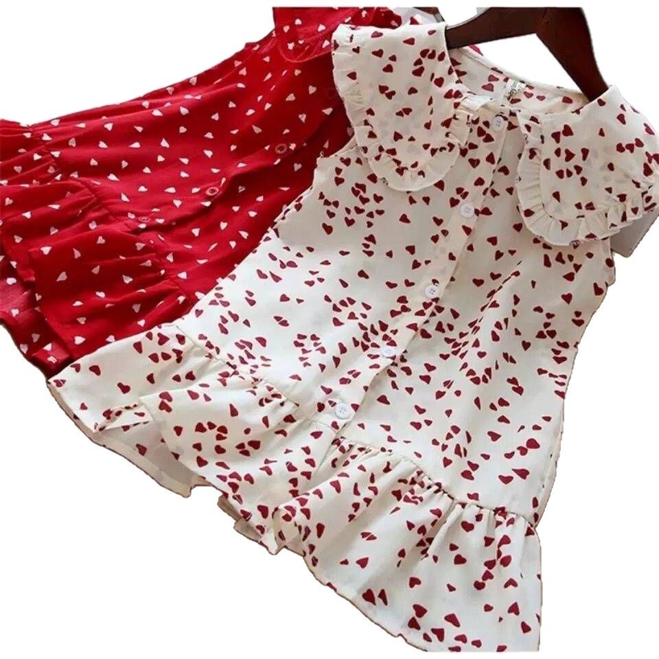 儿童连衣裙2025夏季新款波点印花公主裙翻领无袖连衣裙