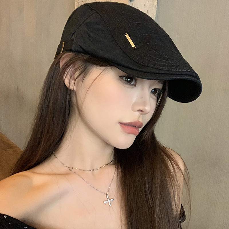 复古前进帽女款夏季新款宽檐显脸小贝雷帽百搭简约薄款透气鸭嘴帽