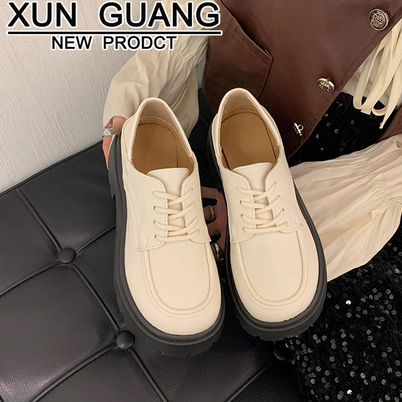 真皮厚底英伦风乐福鞋女春季新款复古百搭日系jk两穿小皮鞋