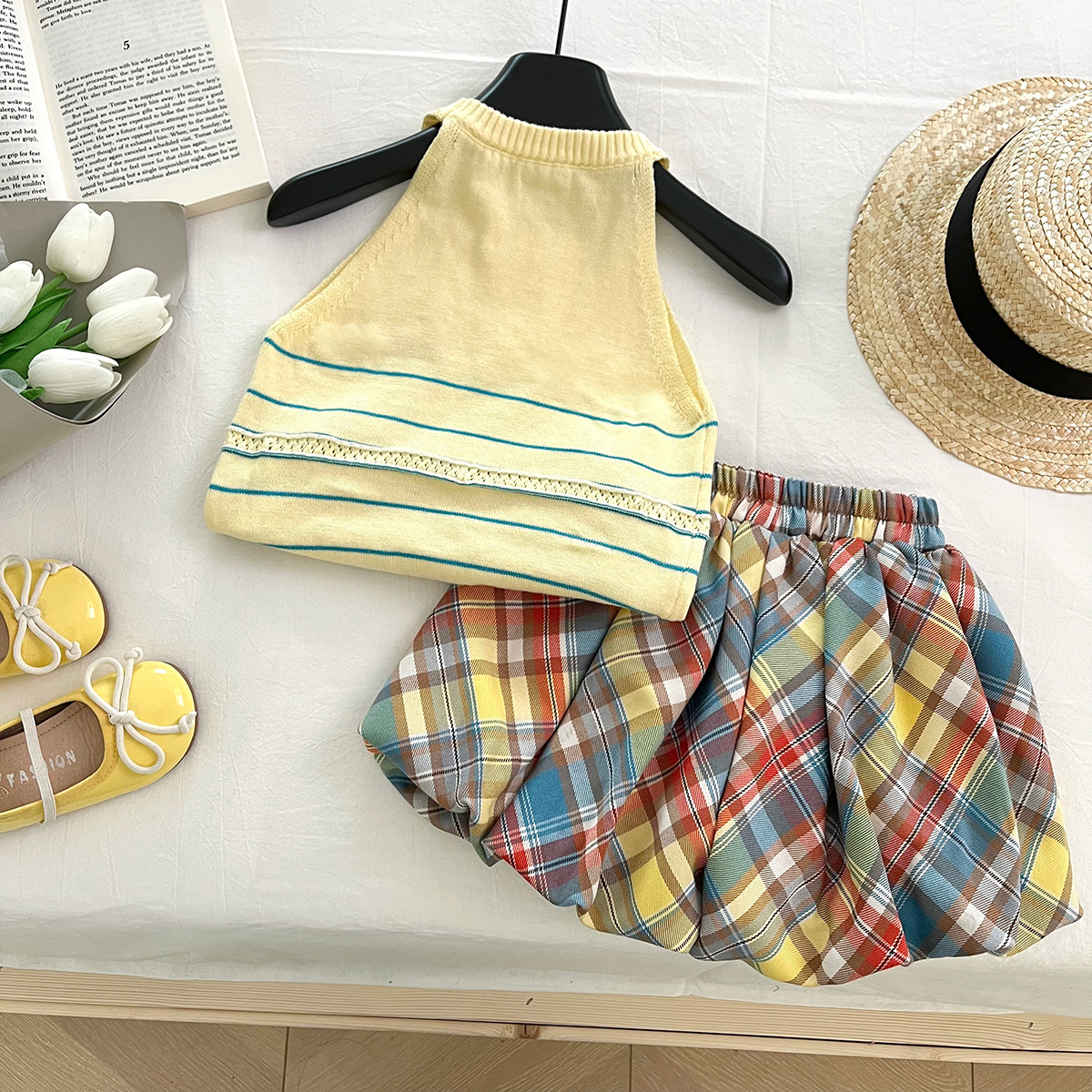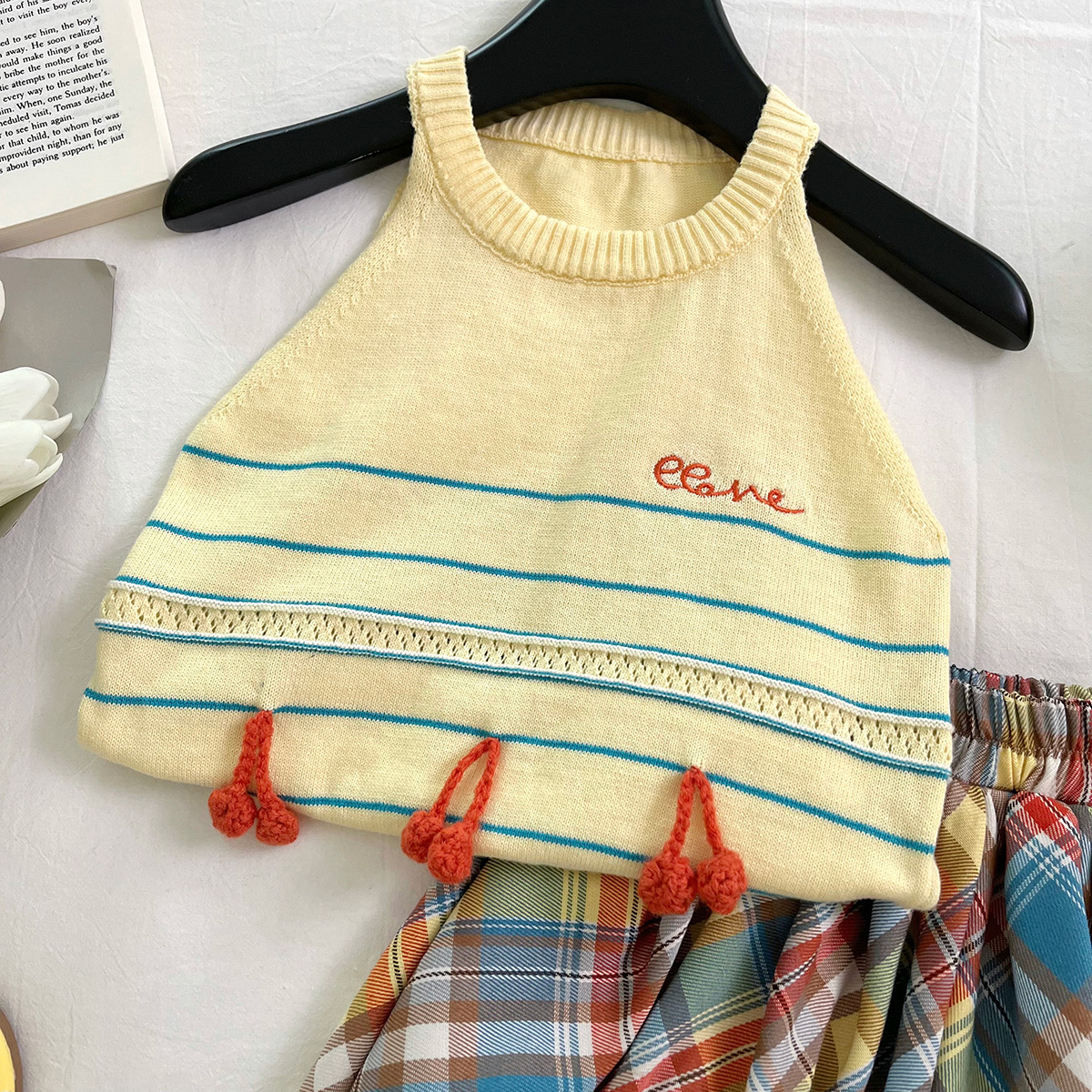 女童套装2025夏季甜美可爱刺绣针织背心+花苞短裤民族风两件套