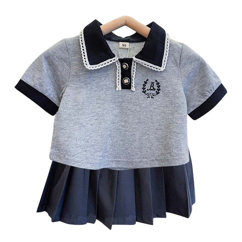 女童套装2025夏季POLO短袖衬衫+百褶裙两件套中小女童