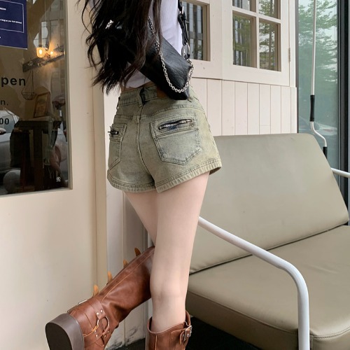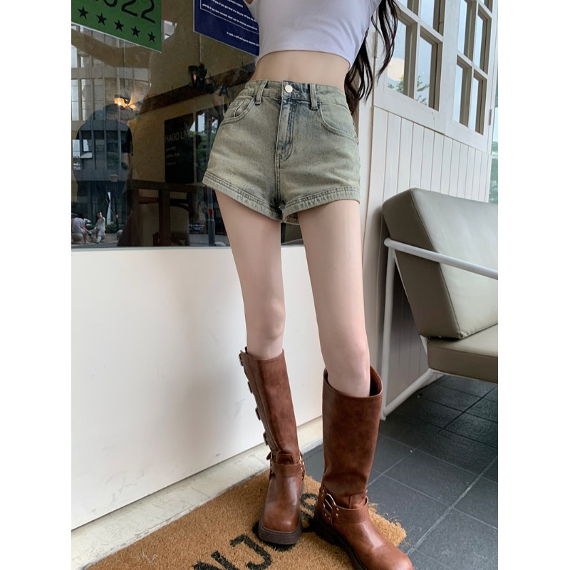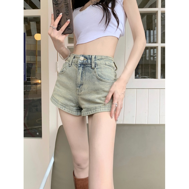 美式复古牛仔裤女夏季新款小个子辣妹高腰直筒阔腿a字短热裤
