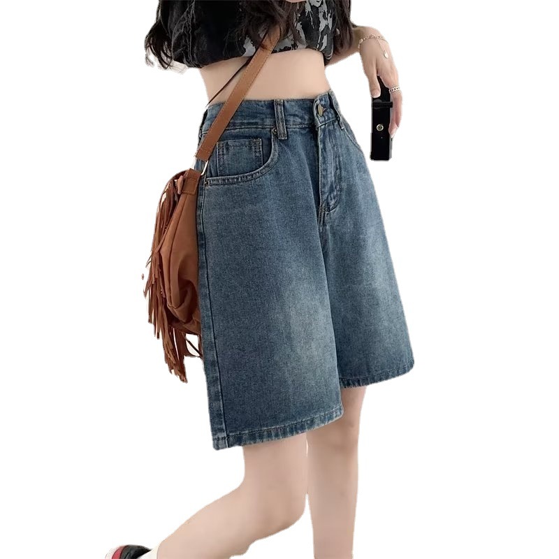 牛仔裤女夏季小个子直筒显瘦高腰美式复古设计感宽松阔腿五分裤子