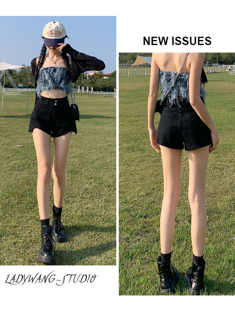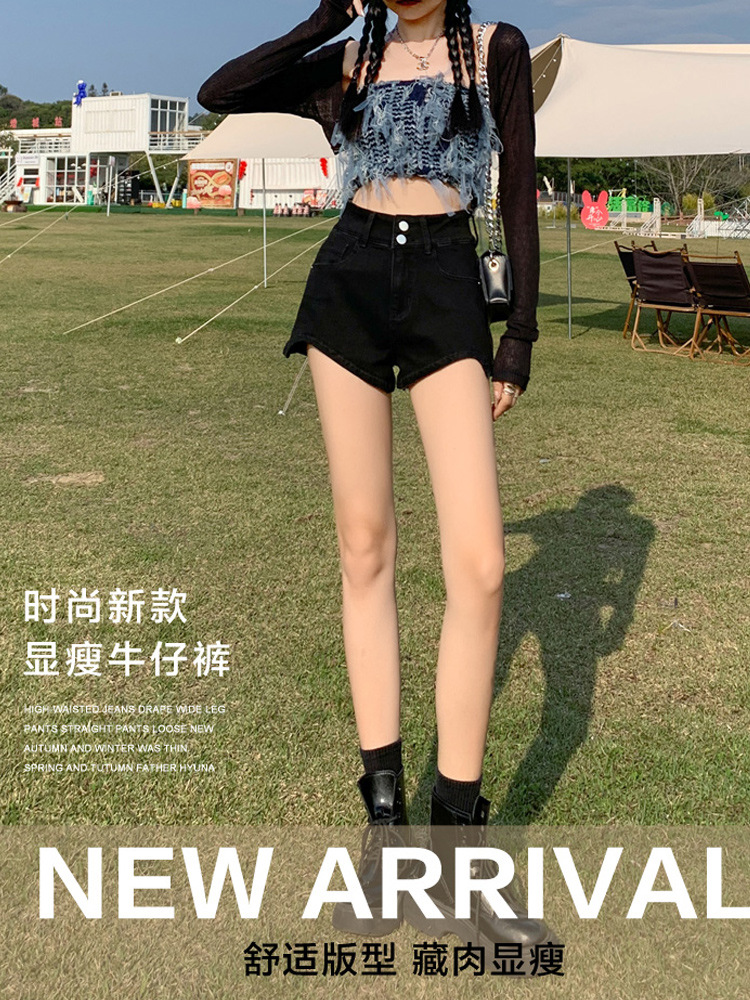 黑色牛仔短裤女夏季薄款新款ins高腰显瘦a字小个子外穿热裤
