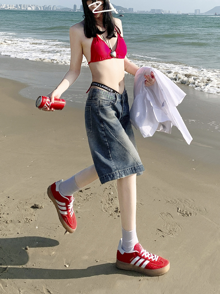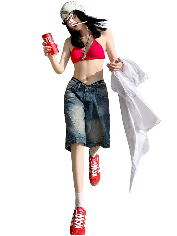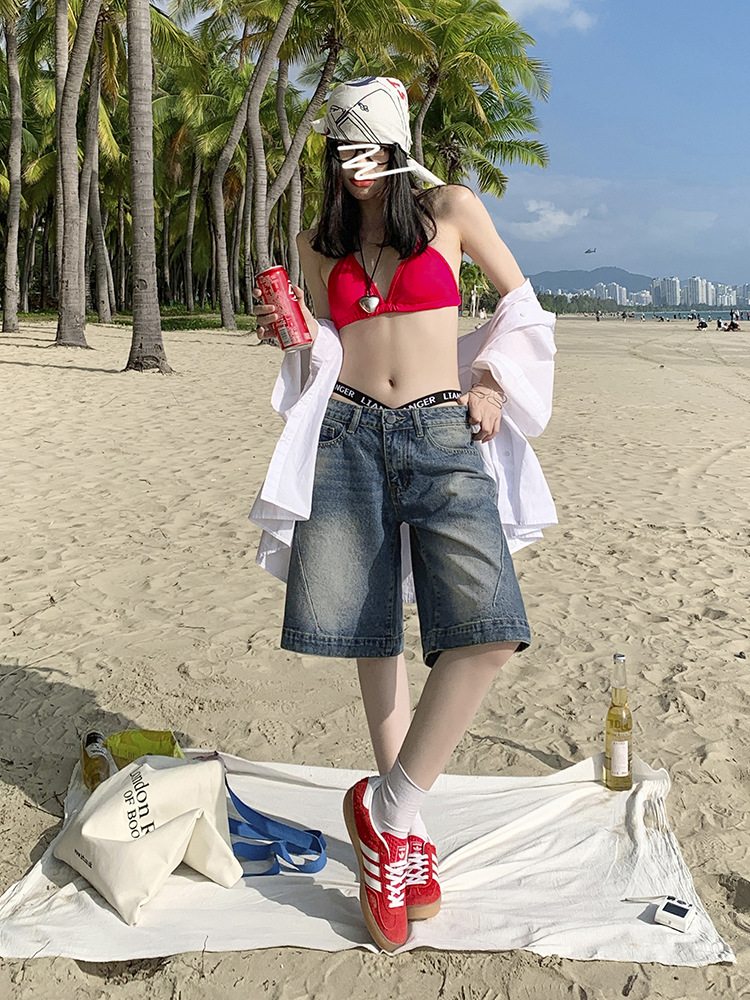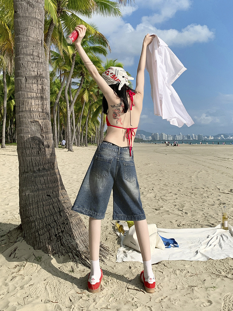 高腰牛仔短裤女夏季新款直筒五分裤复古蓝宽松显瘦外穿裤子