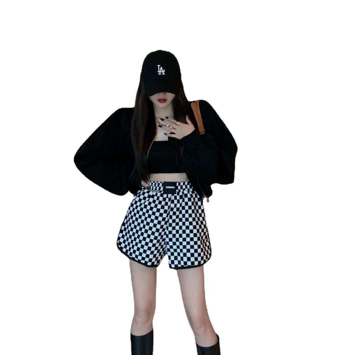 甜辣风夏季宽松大码新款小众时尚百搭格子短裤女