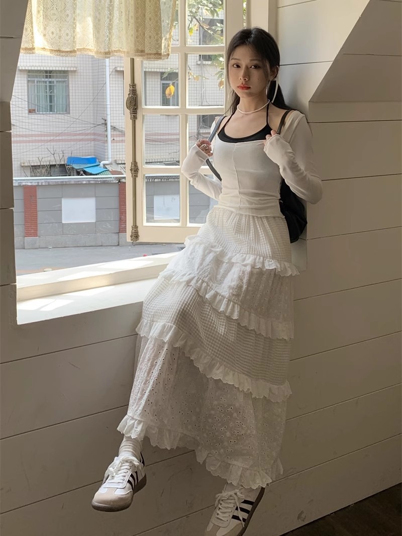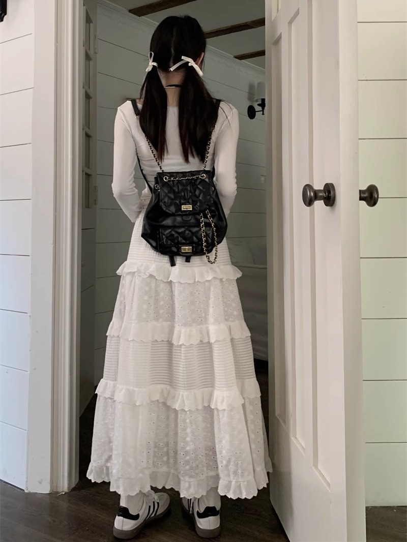 白色半身裙女春款高腰a字裙蛋糕裙温柔风长裙设计感小众裙子