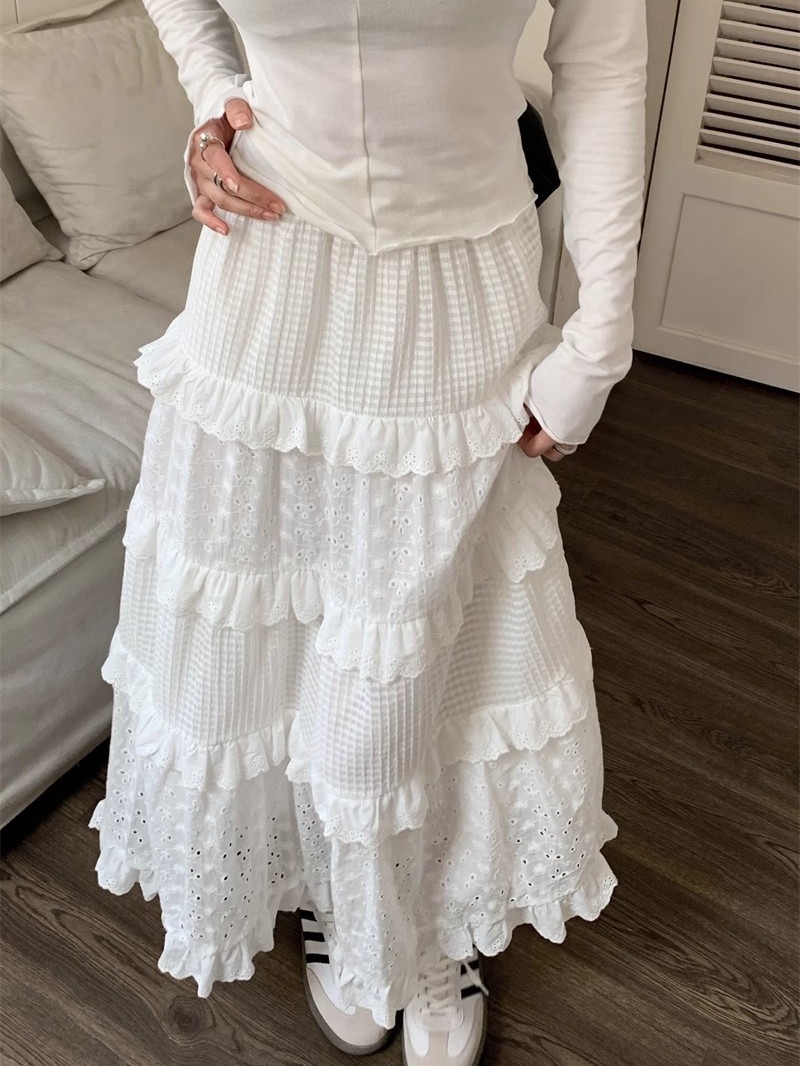 女春夏新款白色蛋糕裙高腰中长款提花小个子蕾丝半身裙a字裙