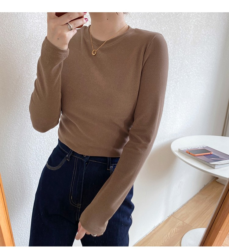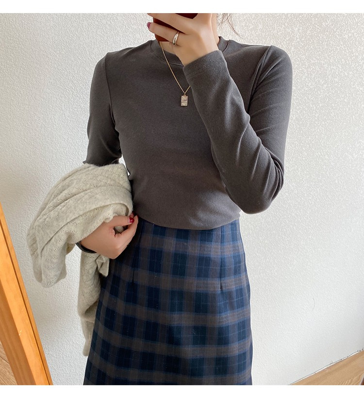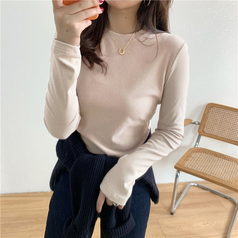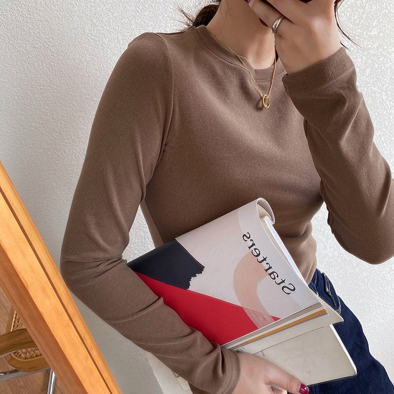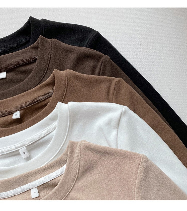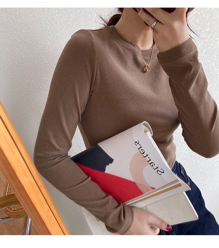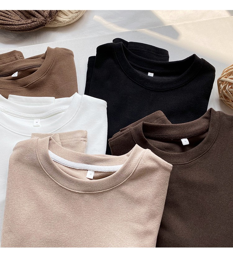 加厚双面德绒圆领打底衫女长袖T恤冬季洋气内搭保暖上衣新款