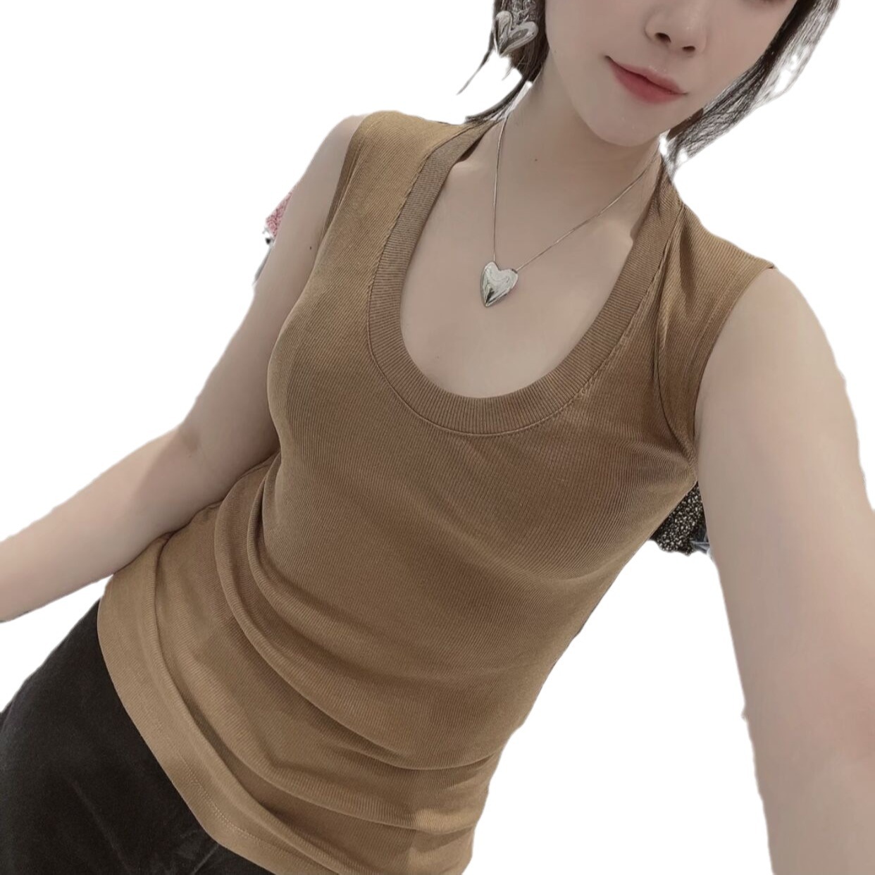 螺纹内搭U领吊带上衣女2025春夏季新款纯色百搭显瘦无袖打底背心