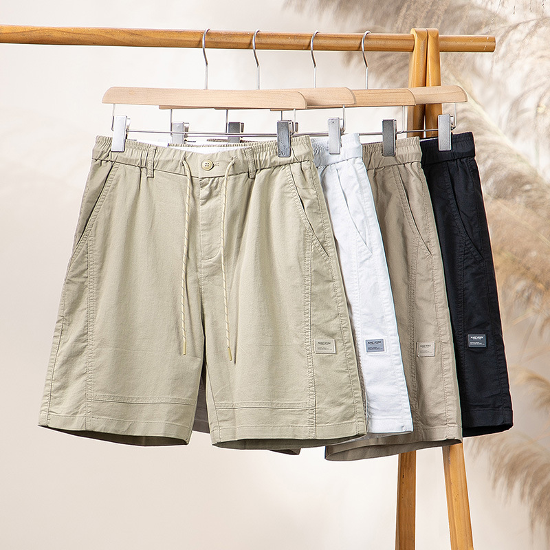 男士短裤夏季新款大码沙滩裤男装纯色休闲短裤男棉麻运动五分裤男