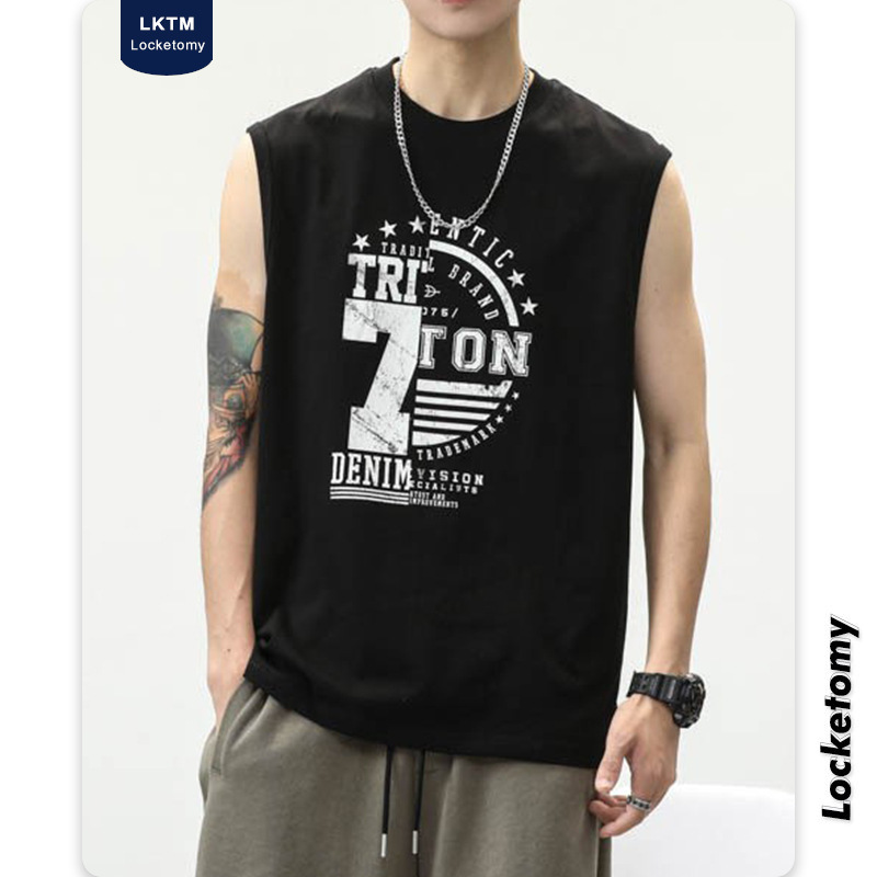 LKTM男装#夏季背心T恤男士日系潮牌宽松运动休闲大码无袖上衣