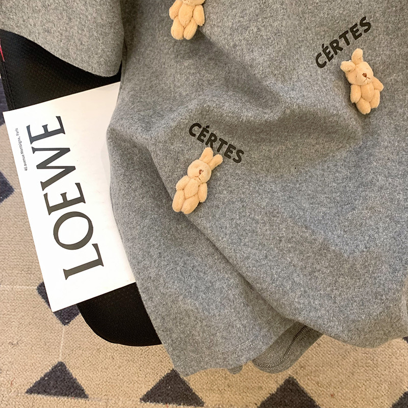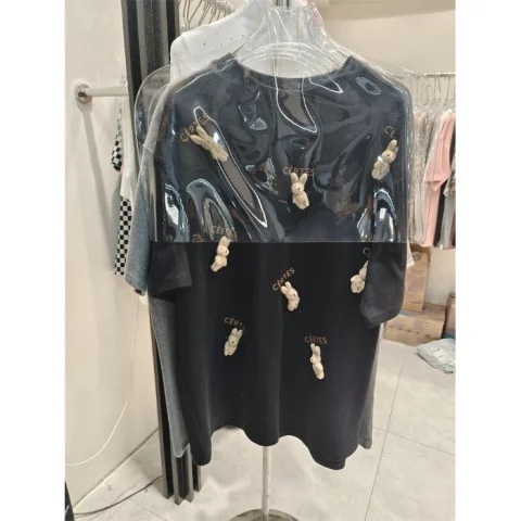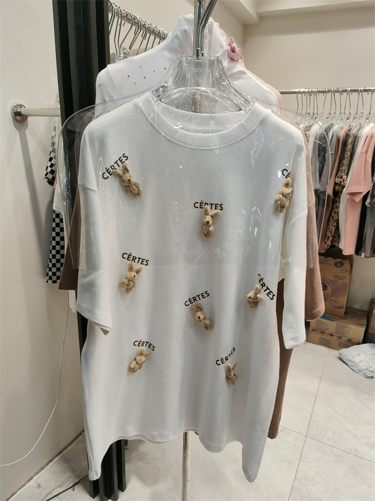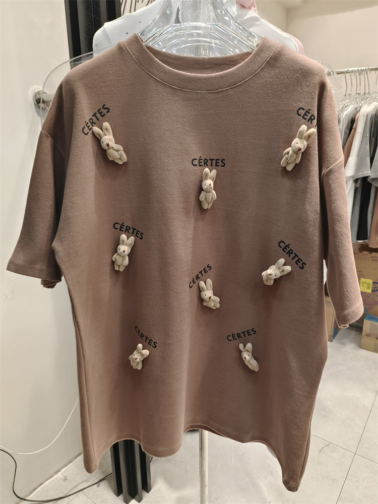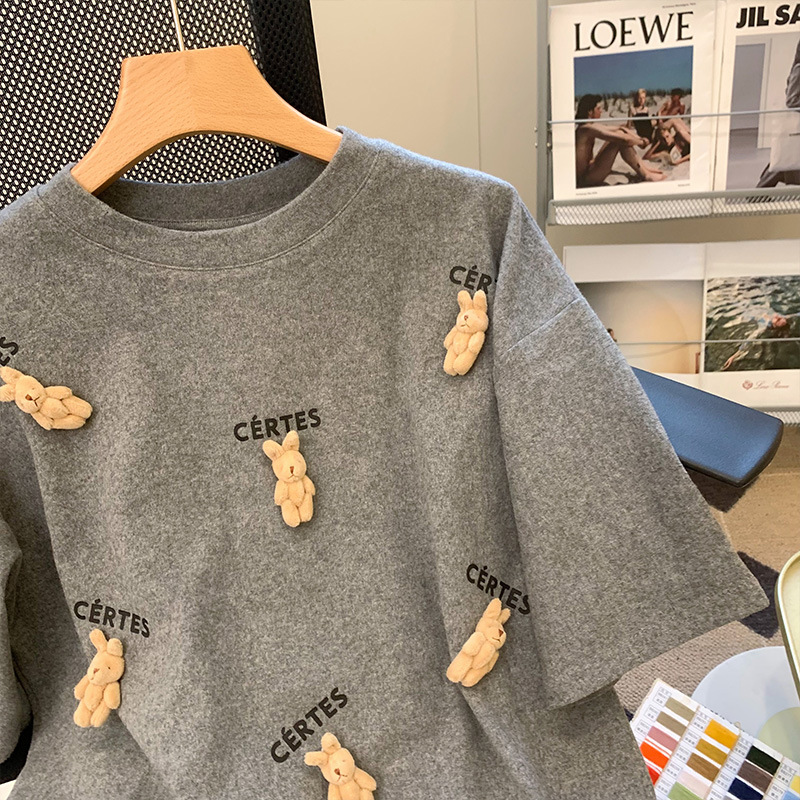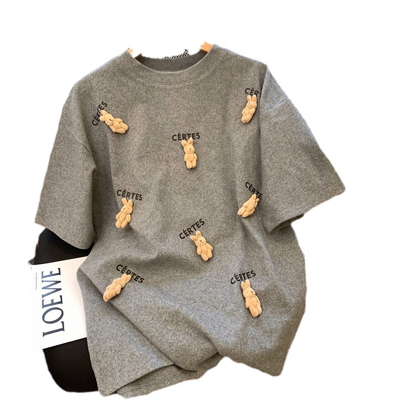 设计感小众重工立体兔子磨毛加厚短袖女2025新款欧货大版t恤上衣