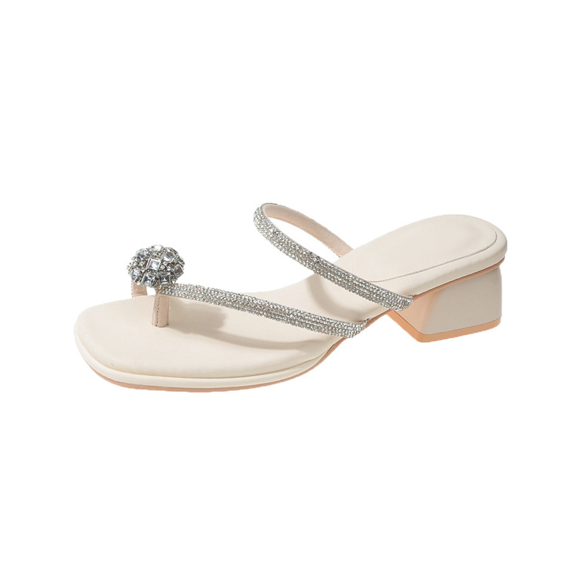 绝美水钻花朵拖鞋女夏外穿2025年新款法式套趾粗跟精致配裙子凉鞋