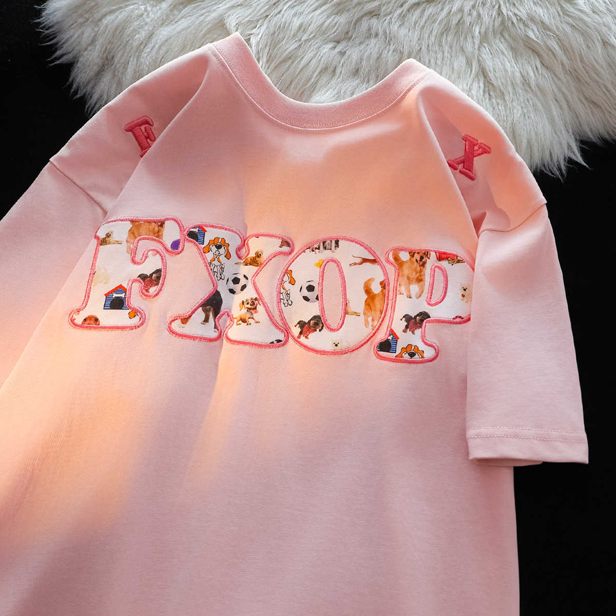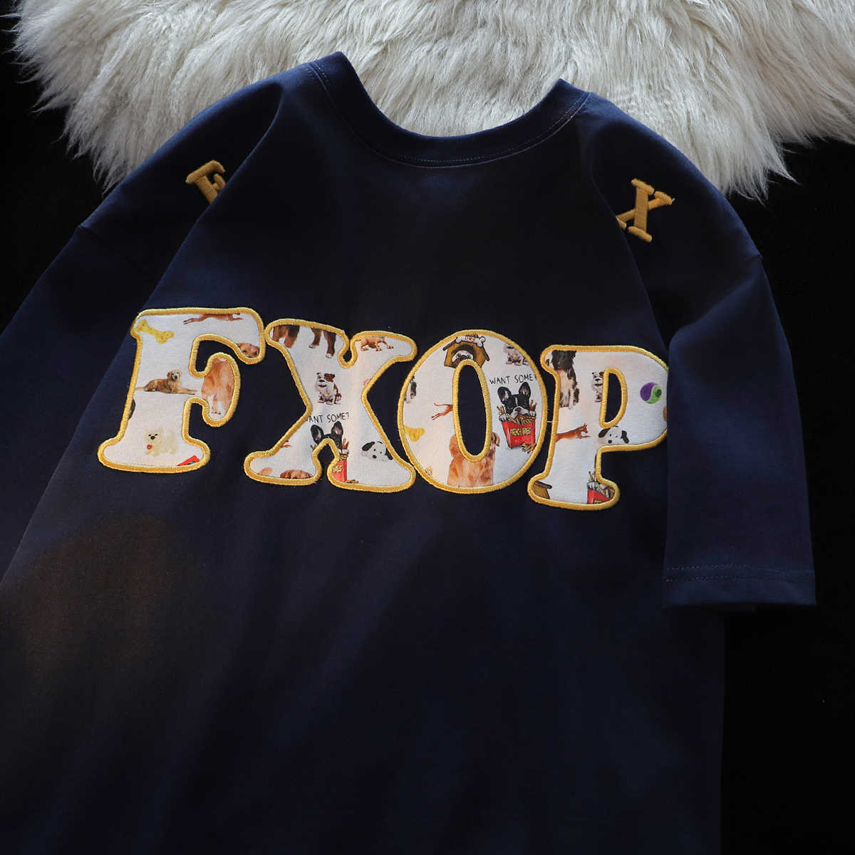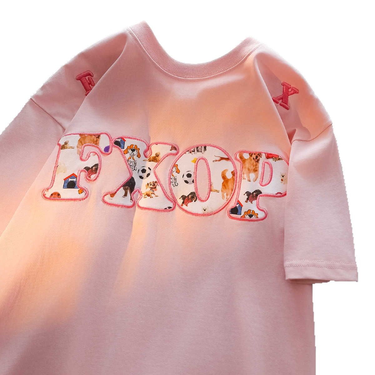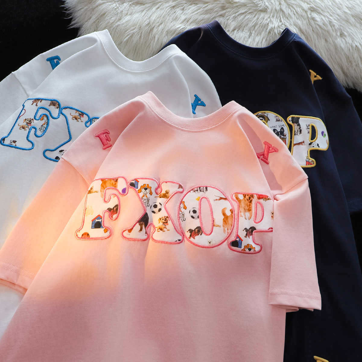 美式甜酷风小狗刺绣纯棉短袖t恤男女夏季ins潮牌宽松情侣半袖上衣