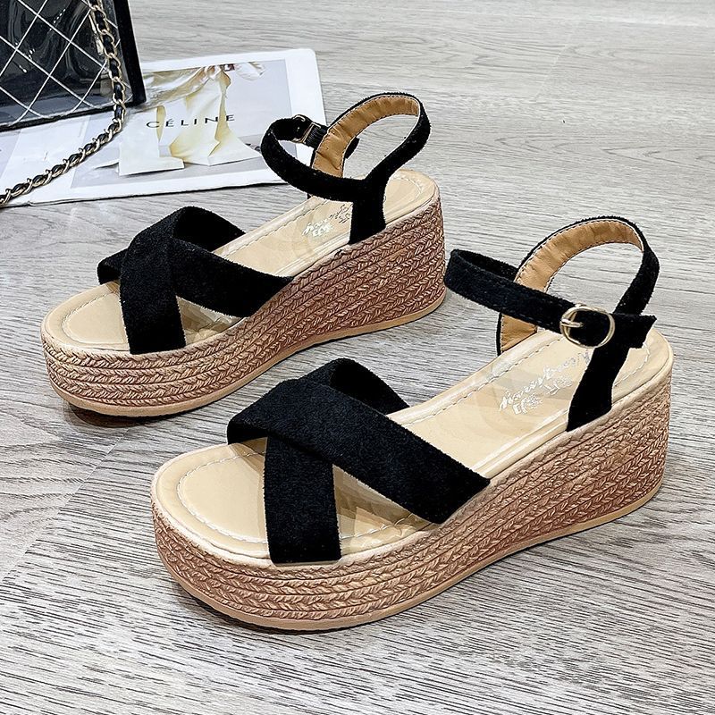 坡跟凉鞋女批发春夏婚鞋高跟鞋韩版百搭厚底松糕鞋一字扣带罗马鞋
