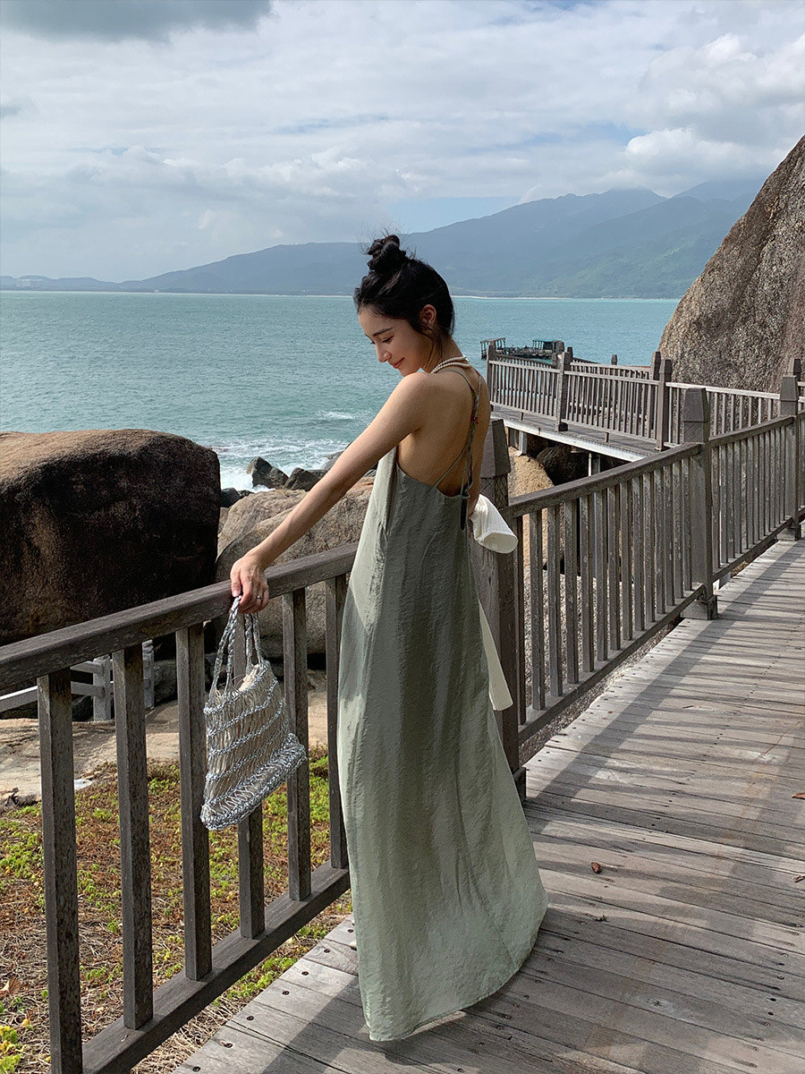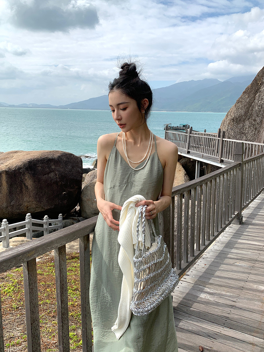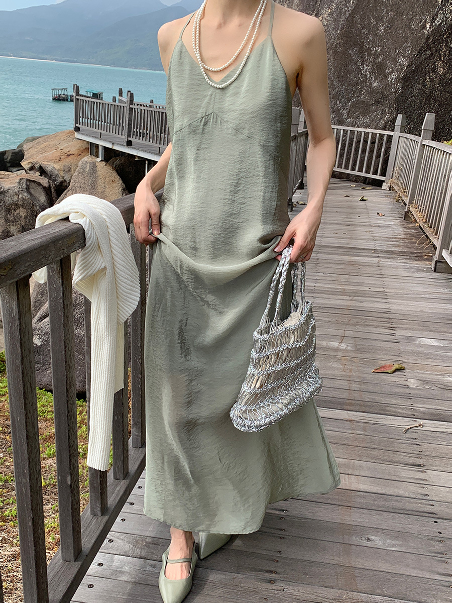 NEIHE内赫高级人丝性格露背仙女气质吊带裙女春夏长裙