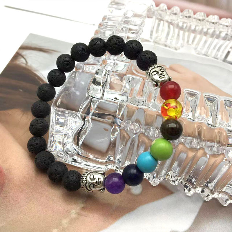 时尚七彩火山石手链男跨境电商热销佛祖合金手串批发
