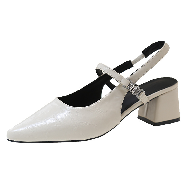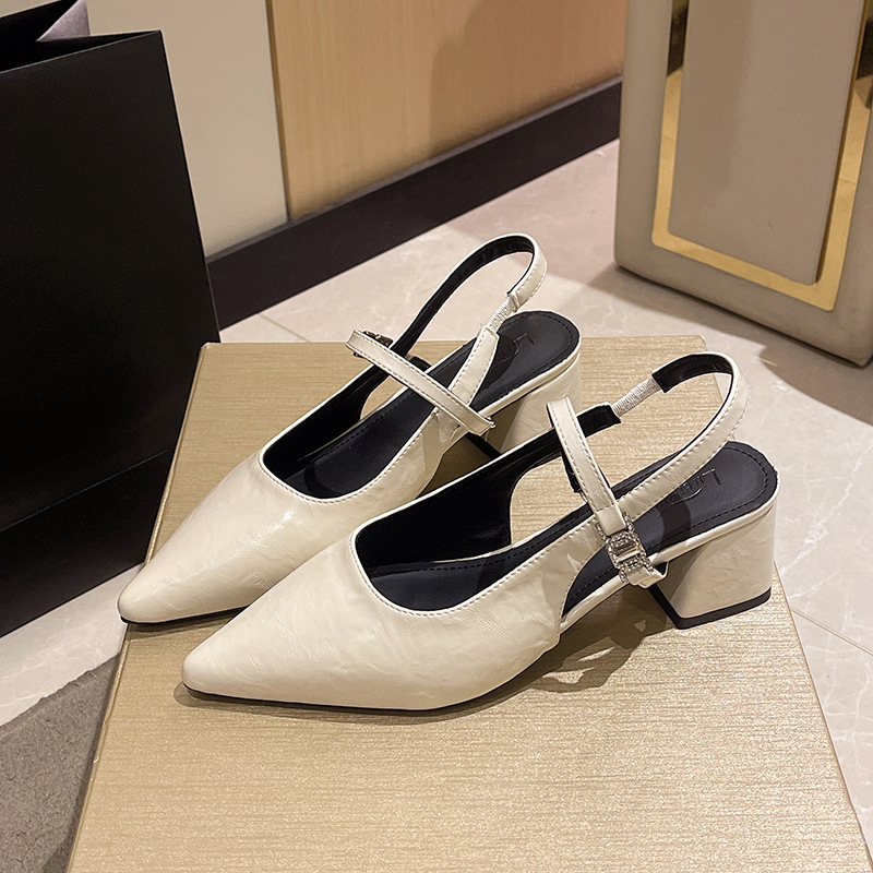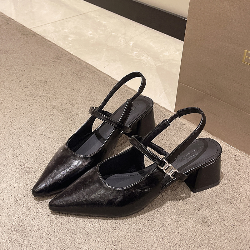 法式粗跟尖头单鞋女2025新款春夏季温柔配裙子晚晚小皮鞋浅口凉鞋