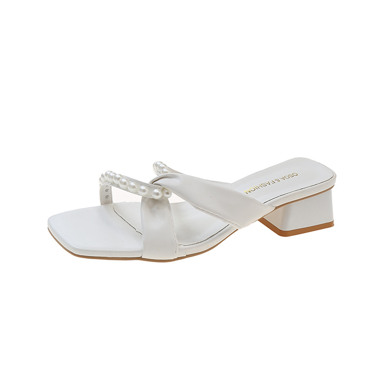 凉拖女夏天2025年新款珍珠低跟拖鞋网红时尚百搭仙女风夏季一字拖