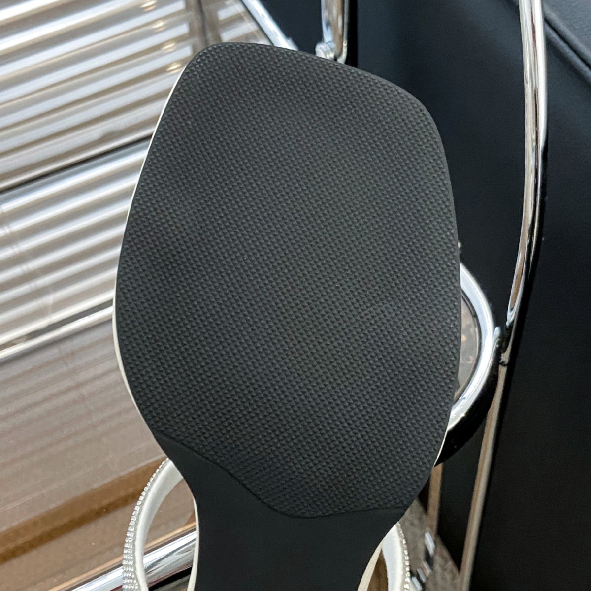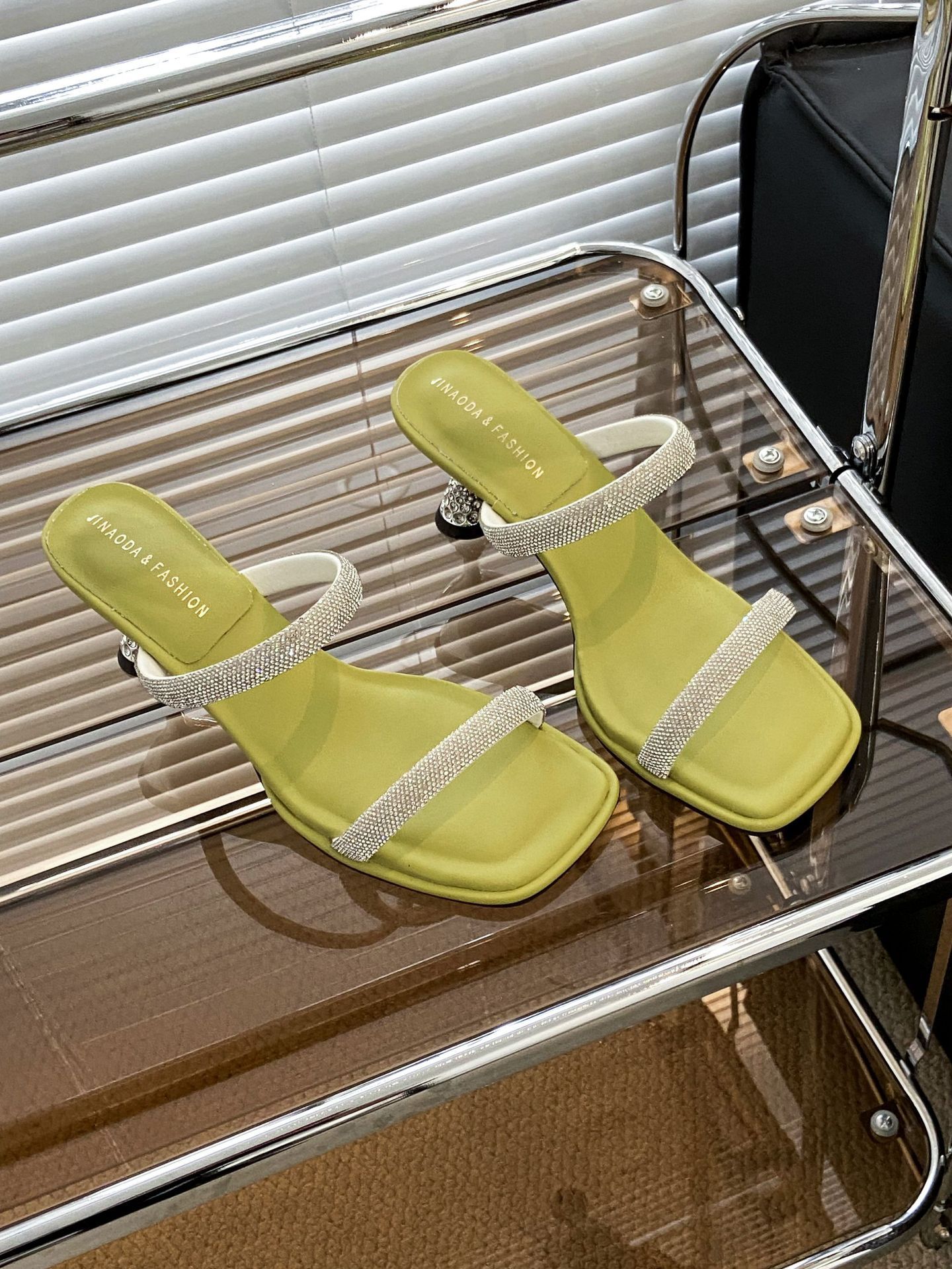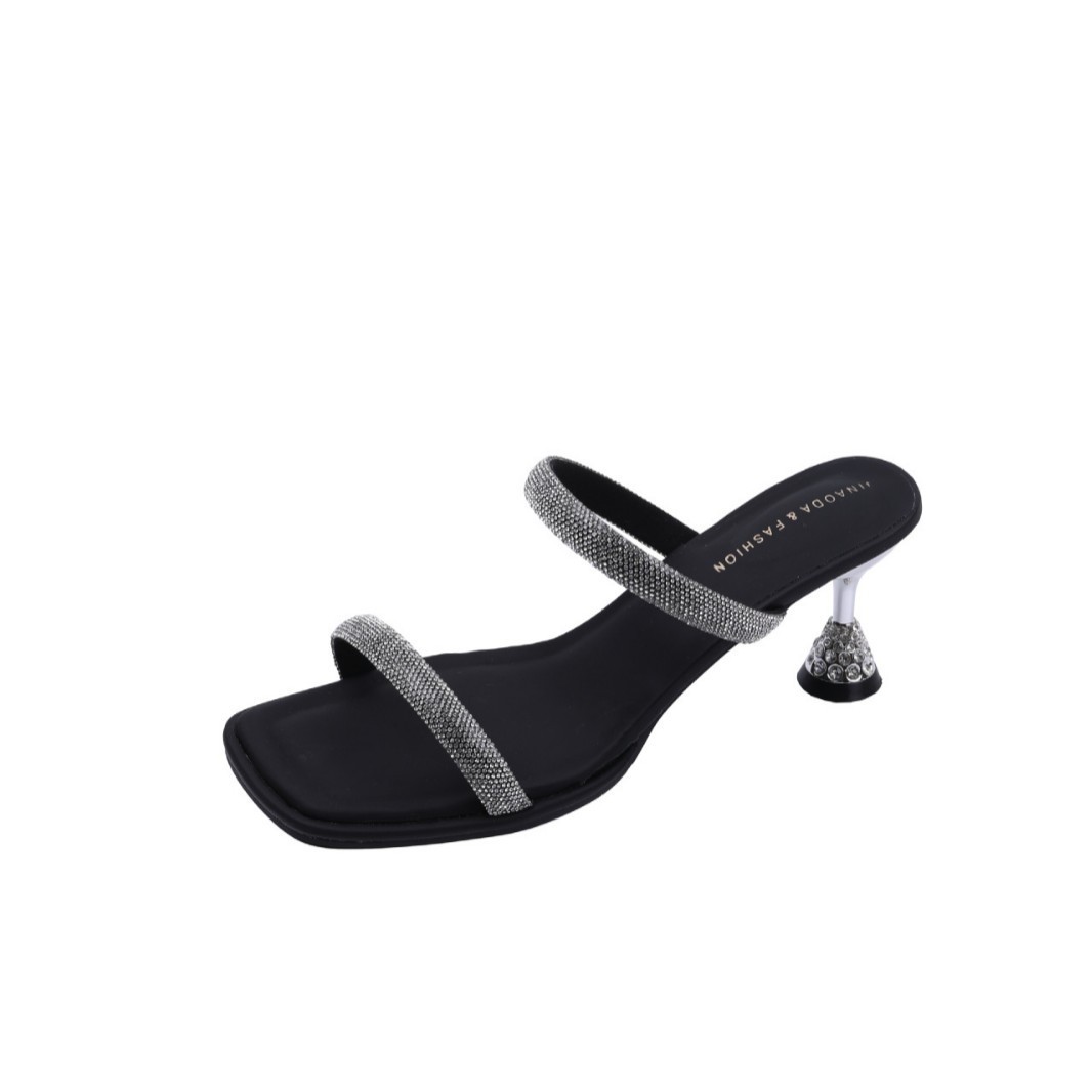 欧洲站高跟金属细跟凉拖鞋2025年新款夏绝美仙女水钻方头一字拖鞋