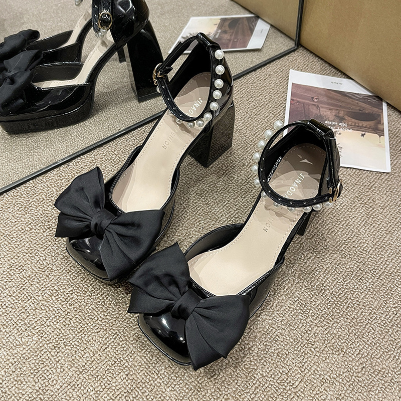 甜美包头凉鞋女2025春夏新款时尚蝴蝶结仙女粗跟防滑玛丽珍高跟鞋
