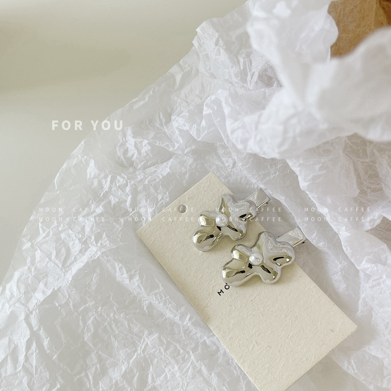 设计感小众花朵珍珠甜酷风鸭边夹发夹女冷淡风超仙刘海夹发饰