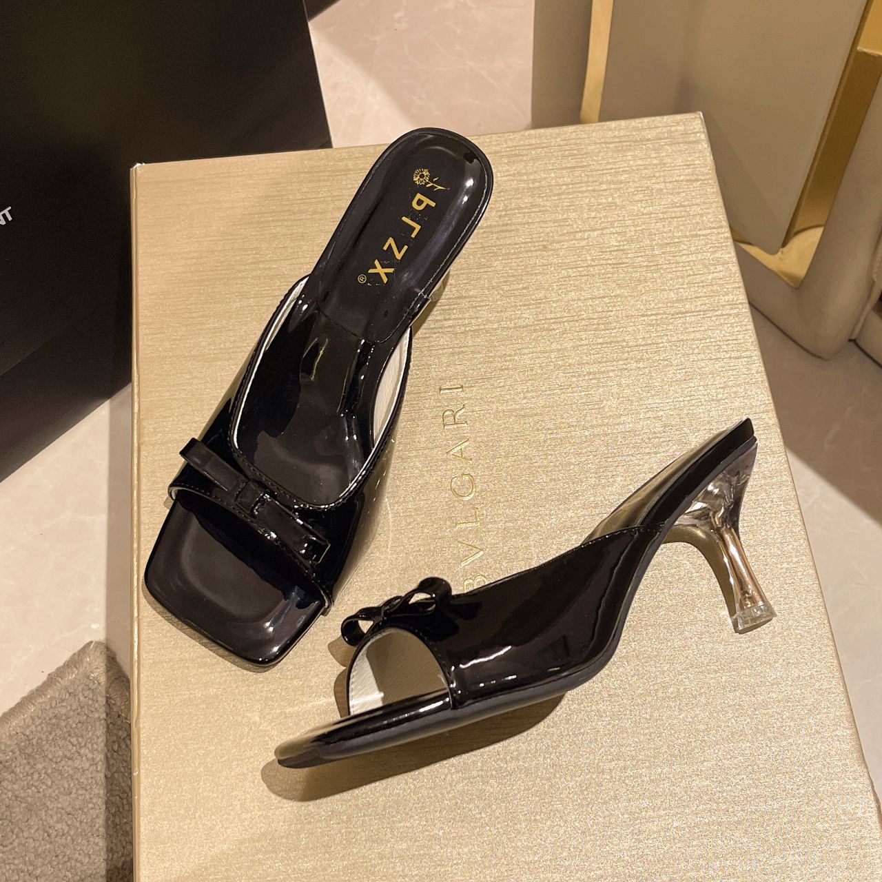 高级感拖鞋女款夏天2025女新款白色一字拖方头露趾细跟高跟鞋凉鞋