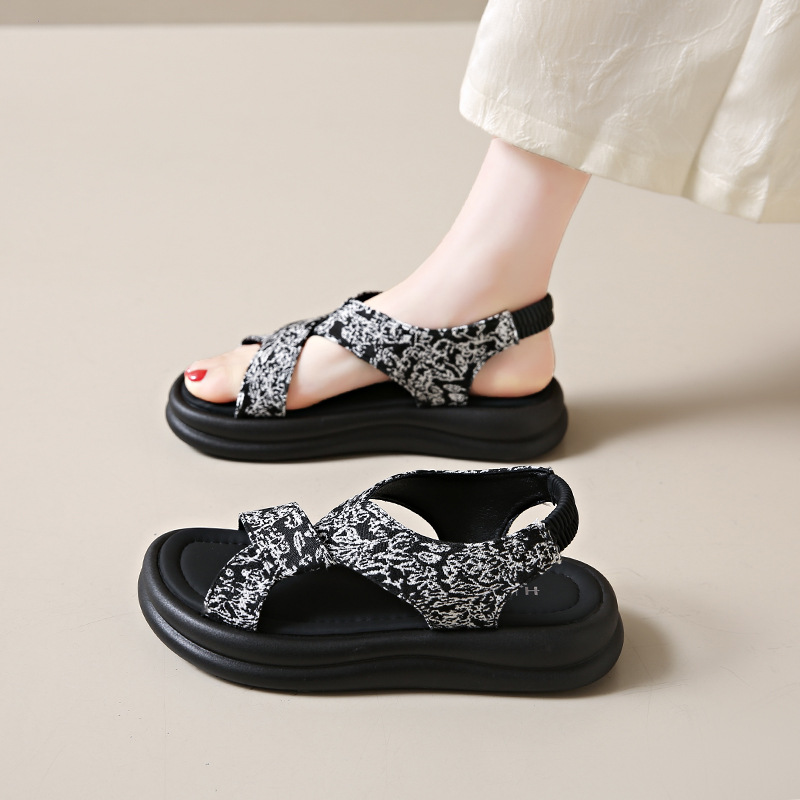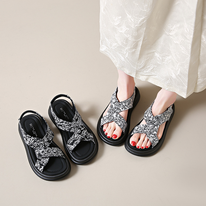 2025新款夏季女鞋国风沙滩罗马鞋新中式厚底增高外穿凉鞋百搭洋气
