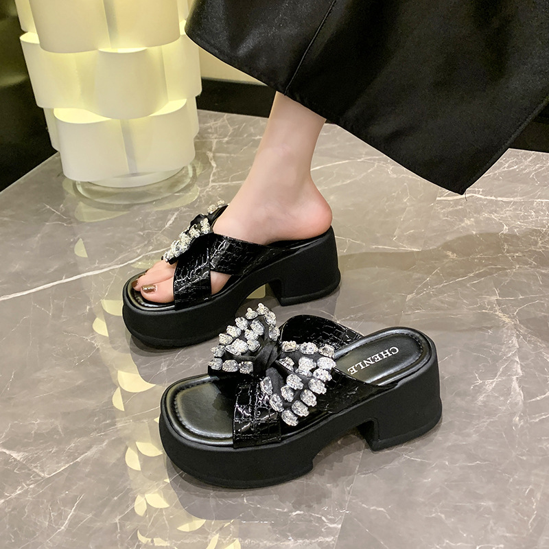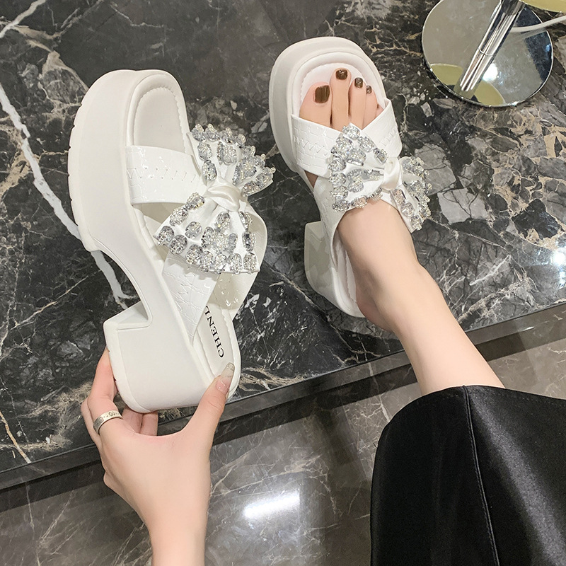 厚底新品一字拖年新款水钻时尚凉拖鞋女夏季外穿蝴蝶结百搭感时尚