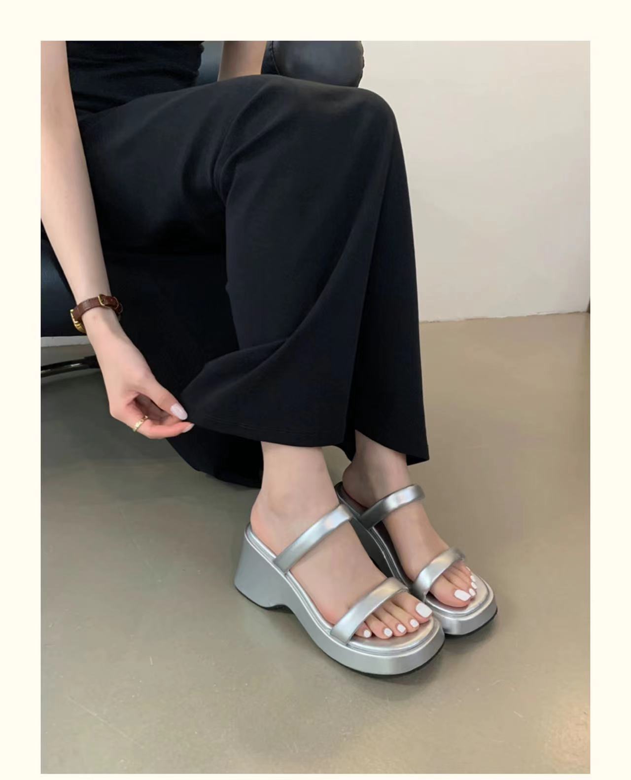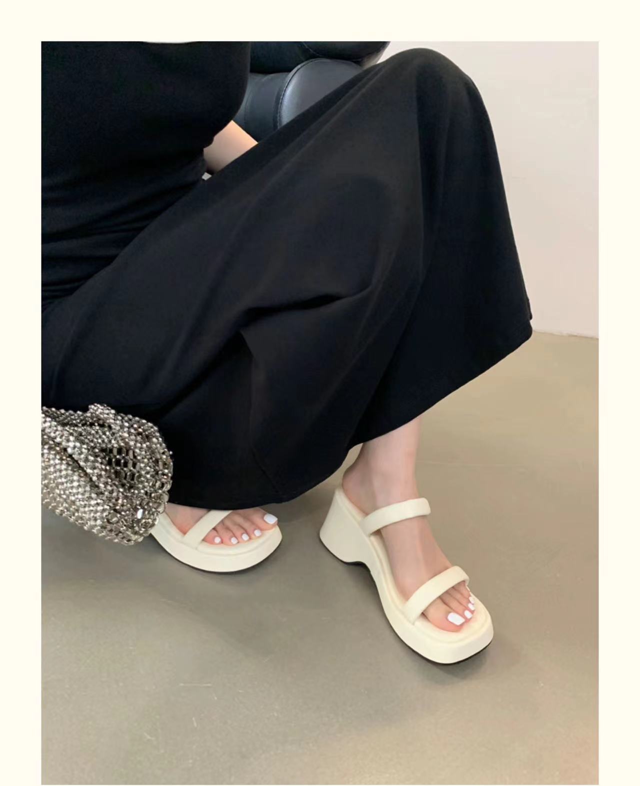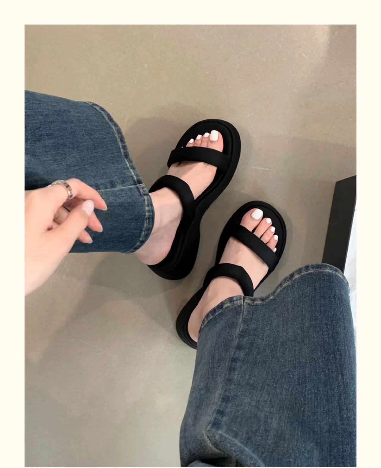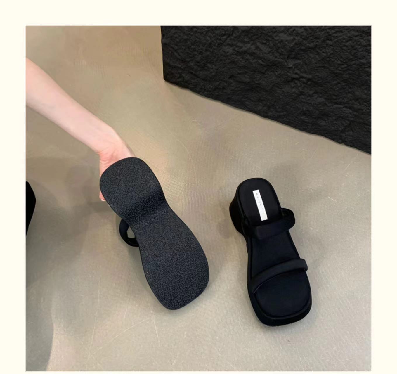 2025年春秋季新款厚底增高一字拖鞋外穿休闲松糕底简约显腿长凉拖
