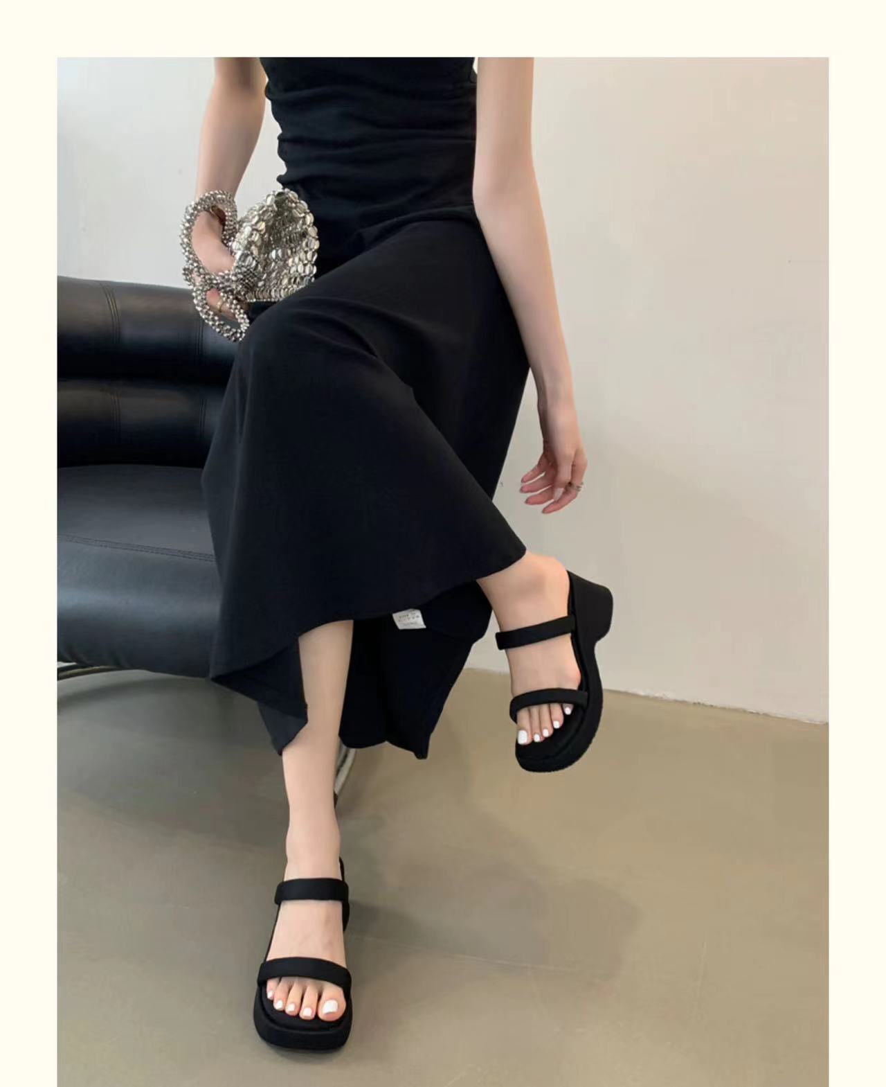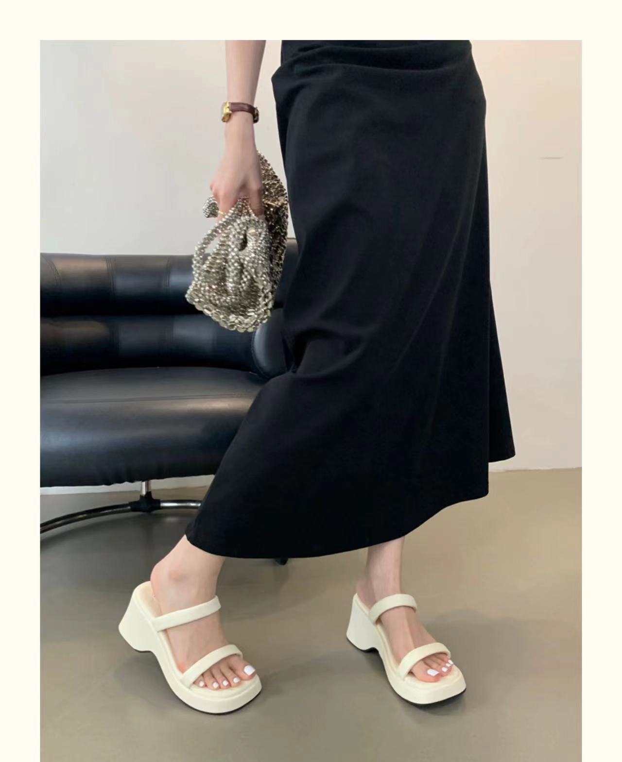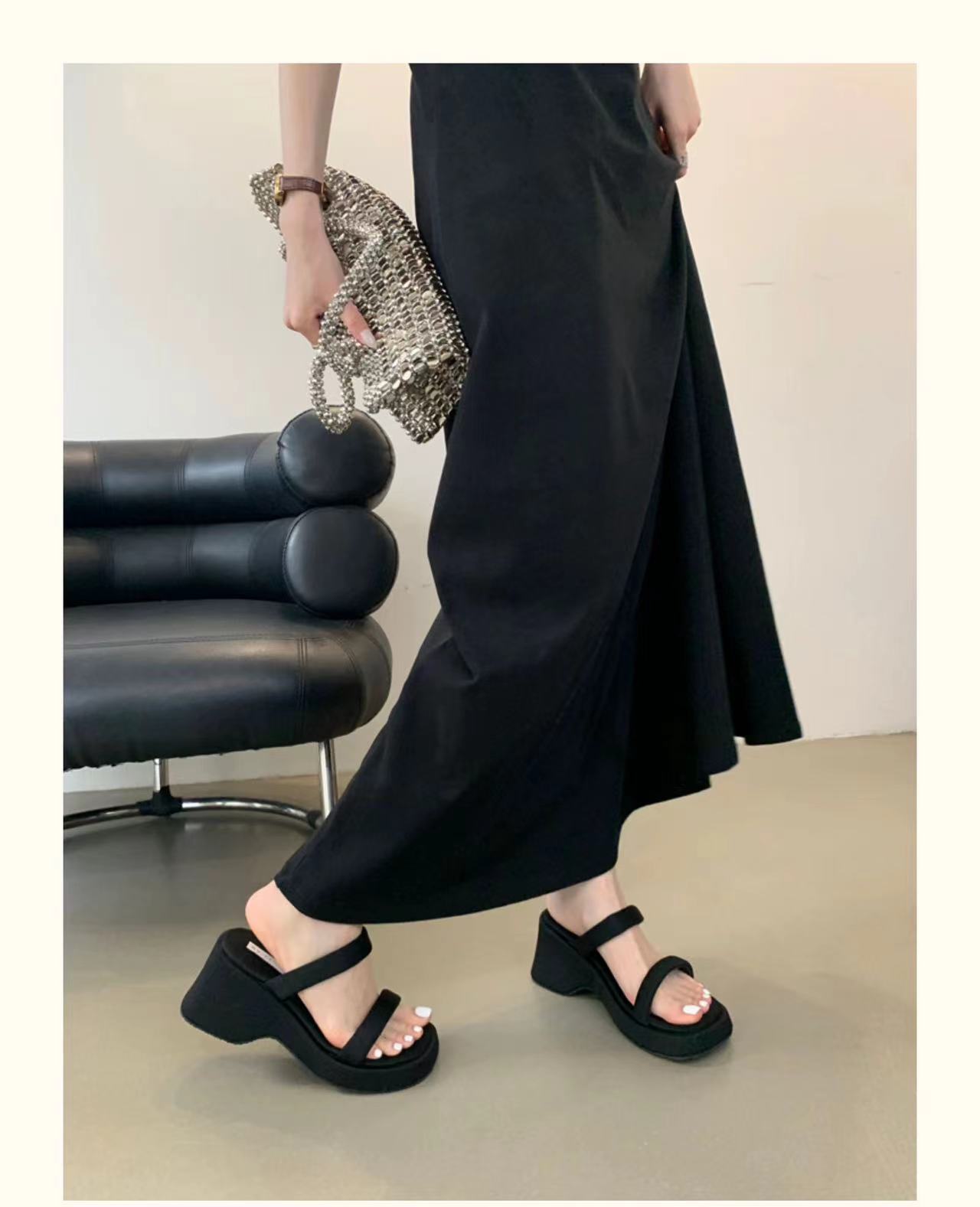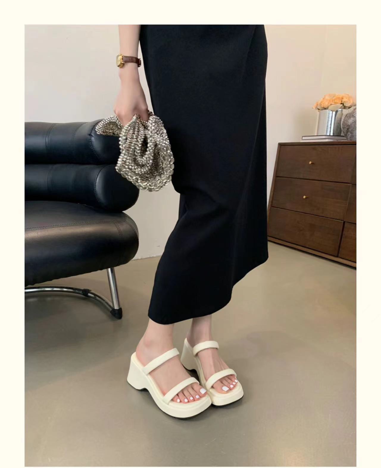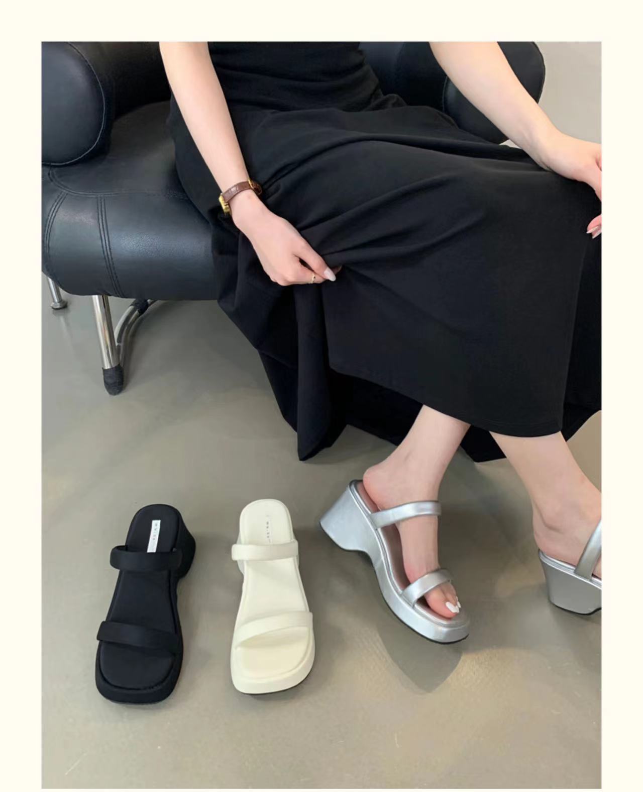 2025年春秋季新款厚底增高一字拖鞋外穿休闲松糕底简约显腿长凉拖