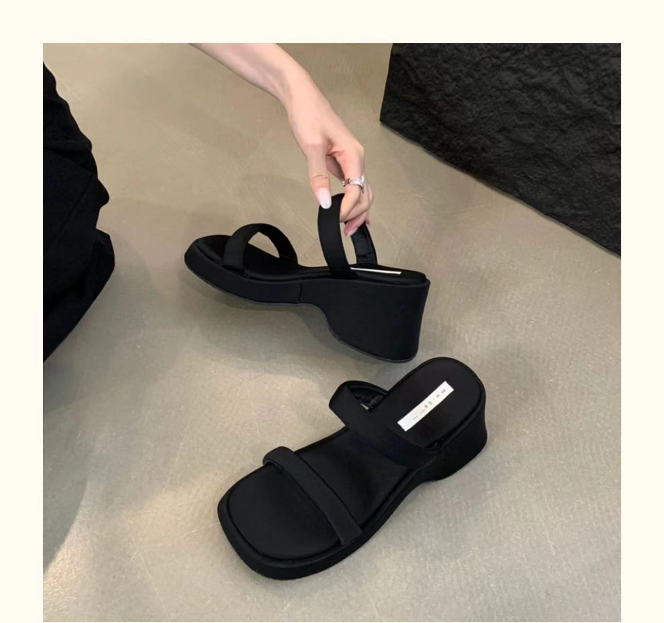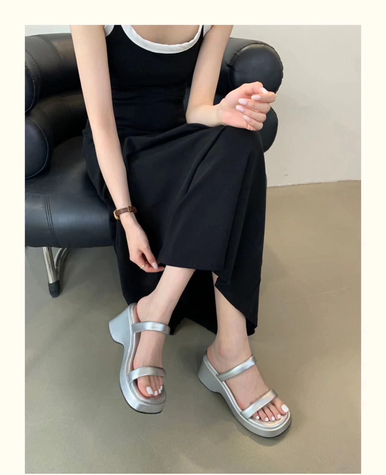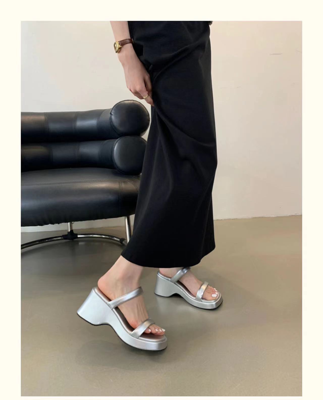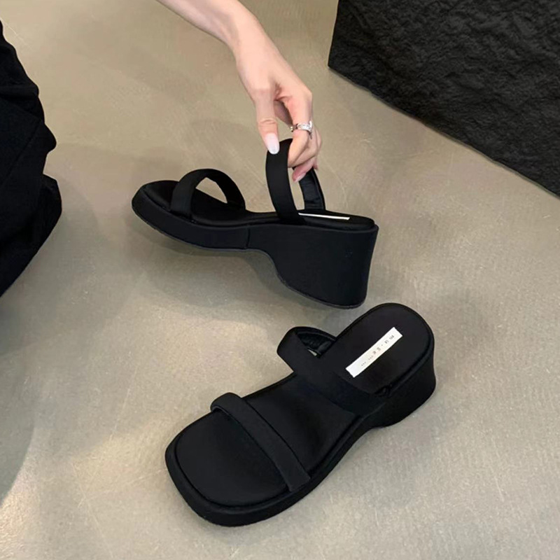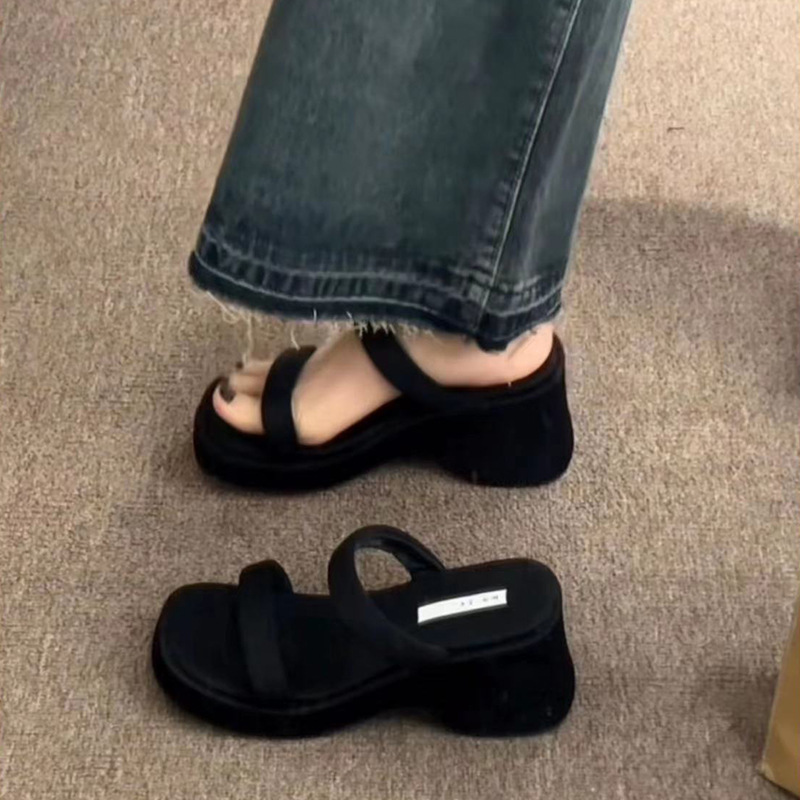 2025年春秋季新款厚底增高一字拖鞋外穿休闲松糕底简约显腿长凉拖