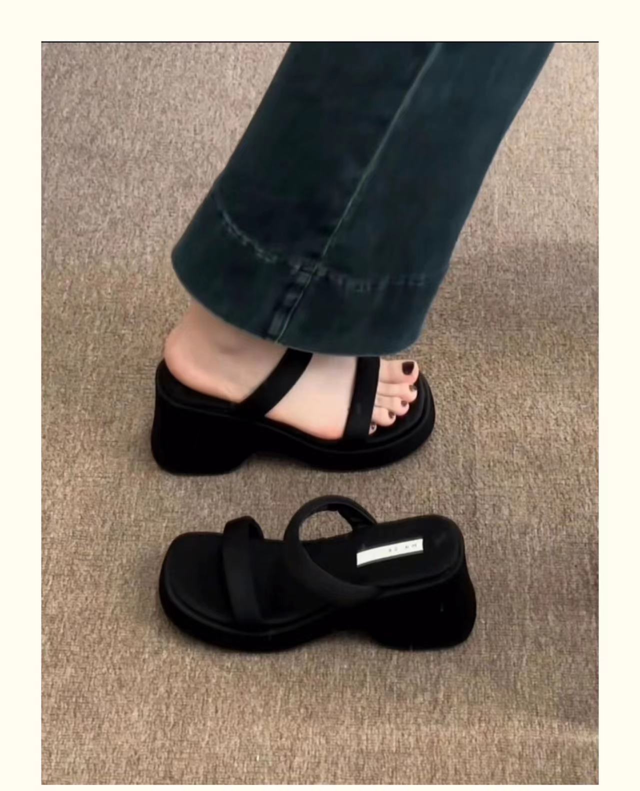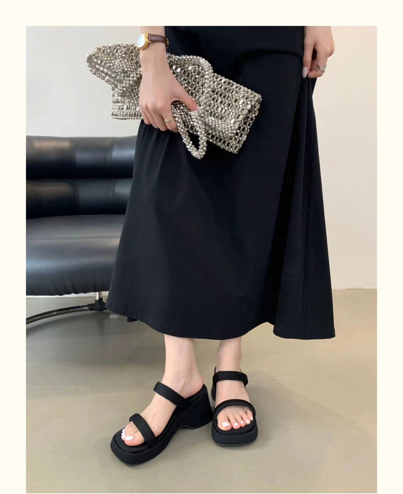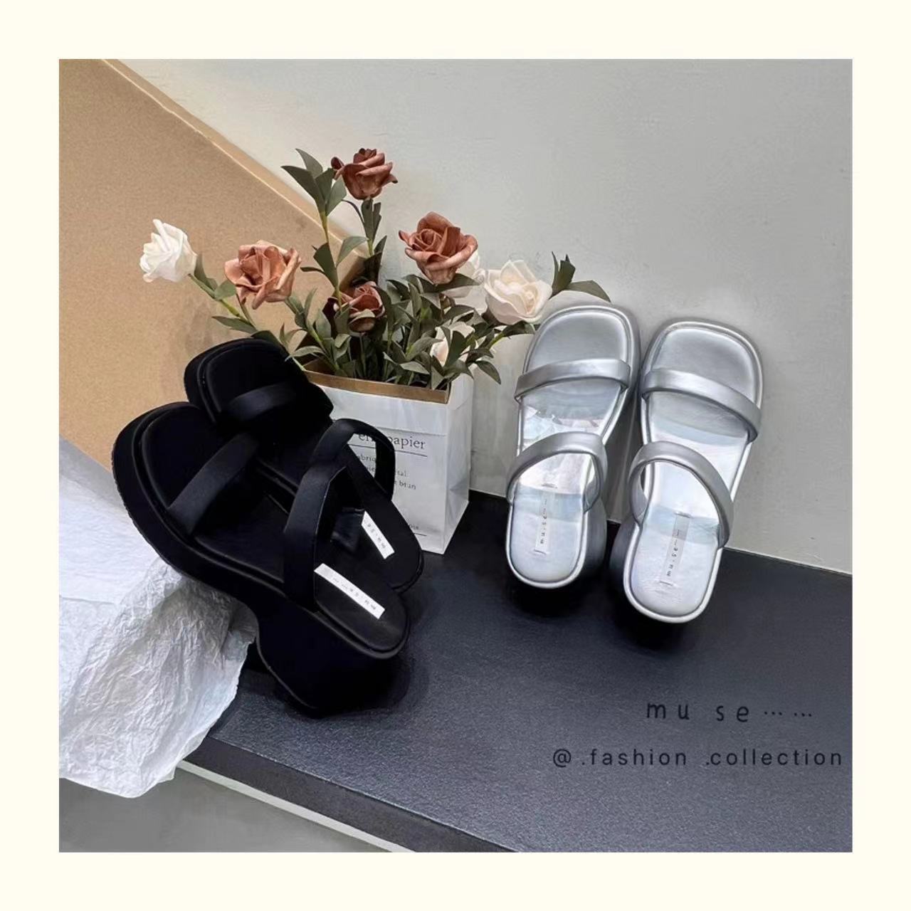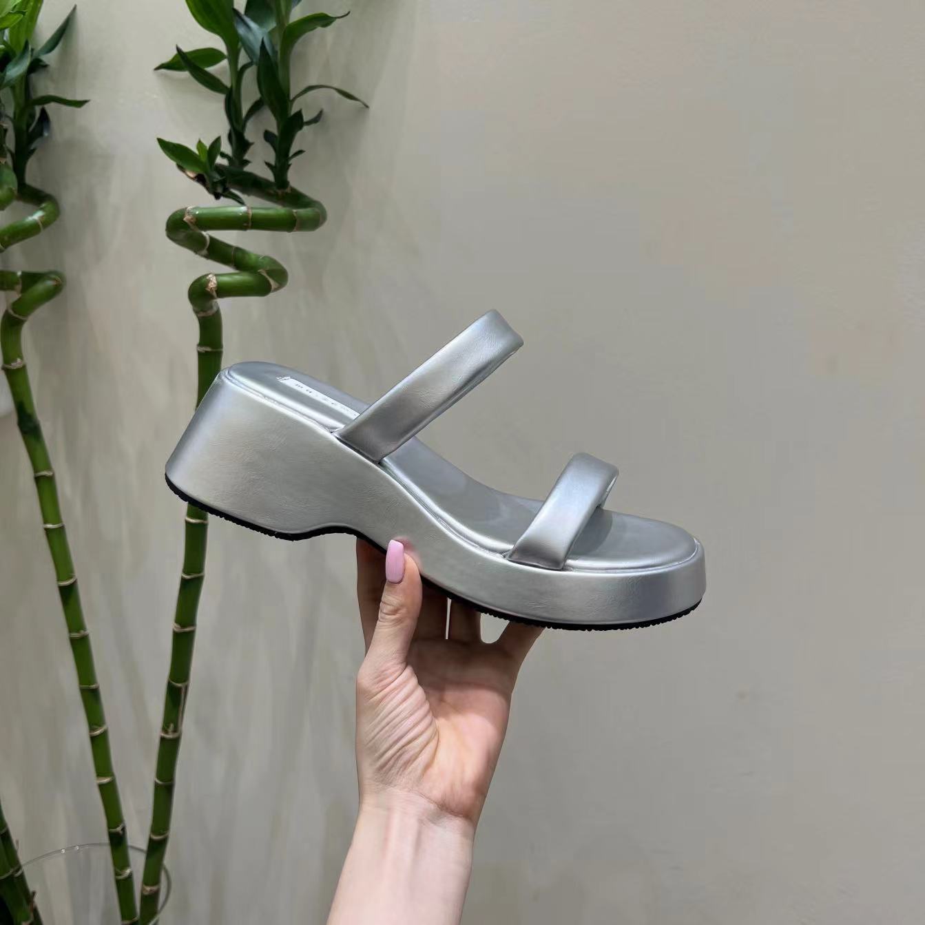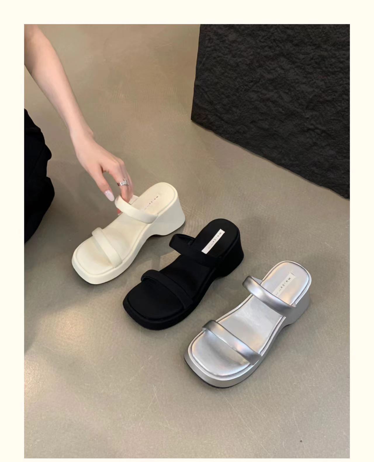 2025年春秋季新款厚底增高一字拖鞋外穿休闲松糕底简约显腿长凉拖
