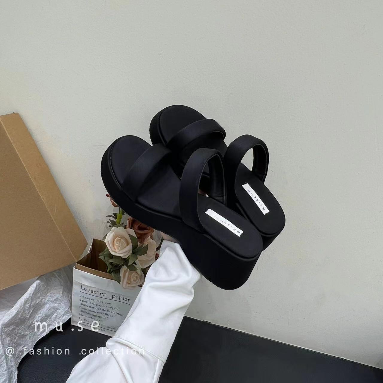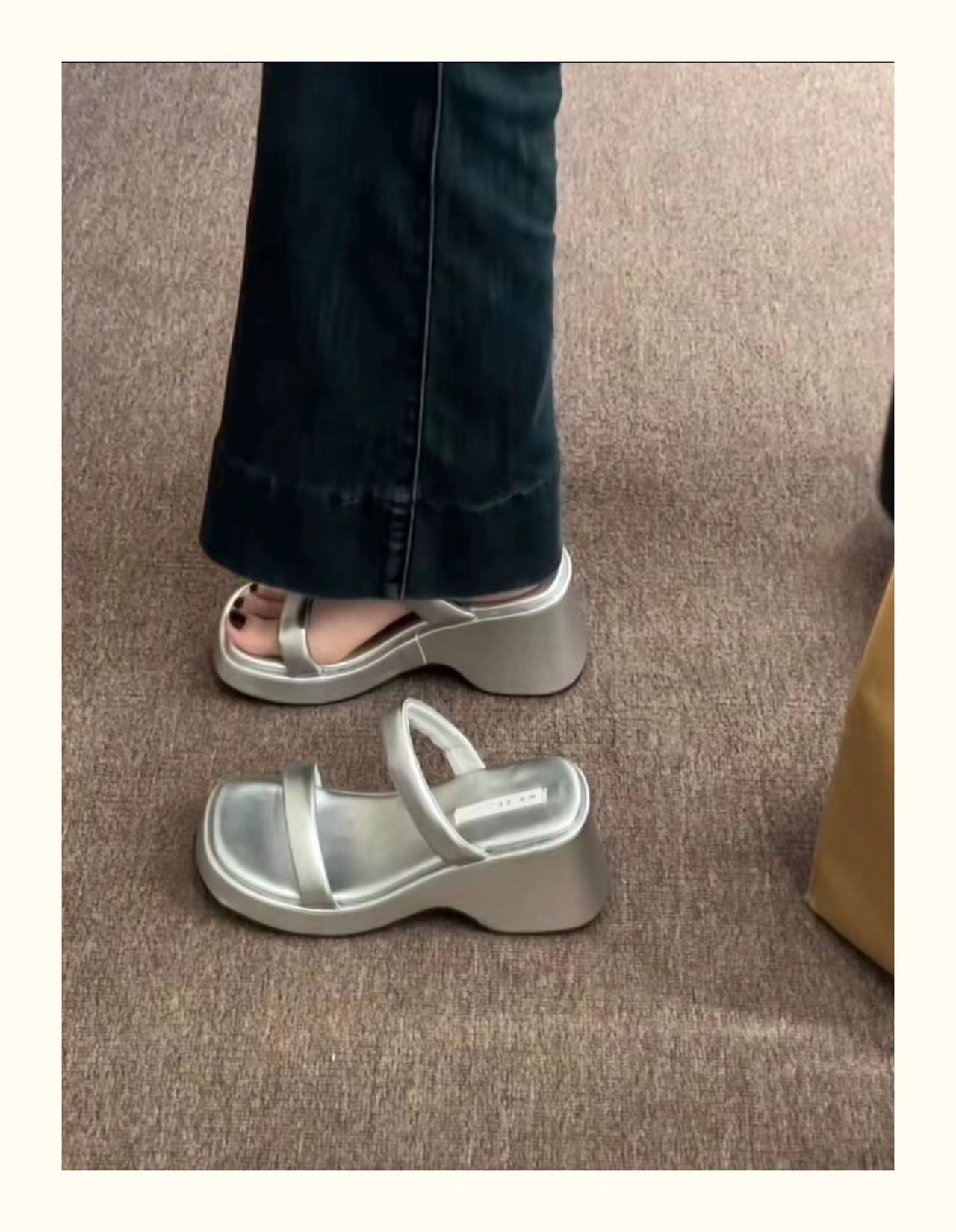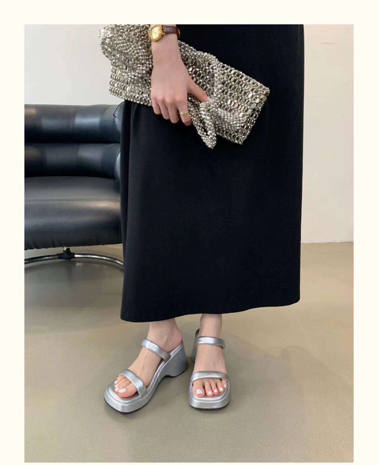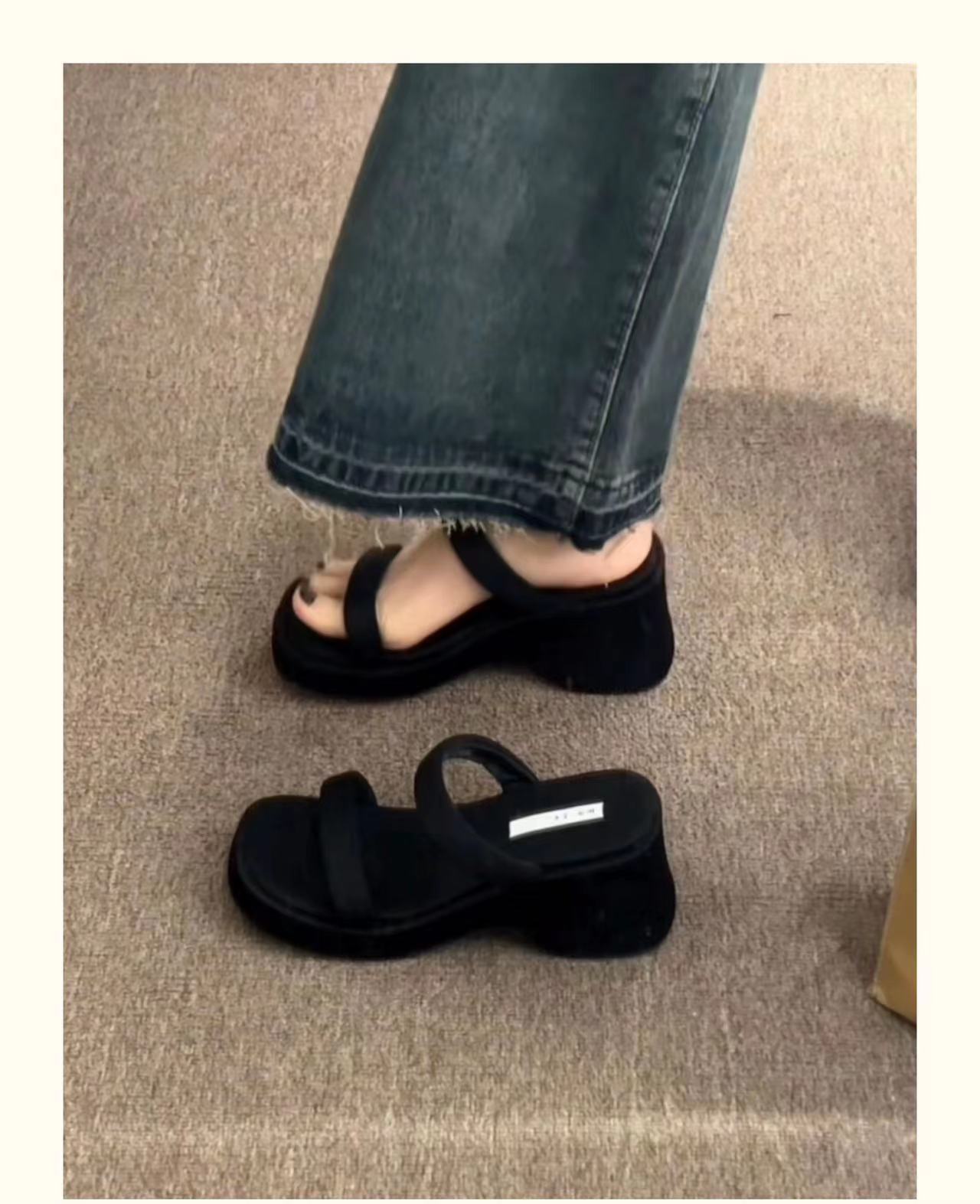 2025年春秋季新款厚底增高一字拖鞋外穿休闲松糕底简约显腿长凉拖