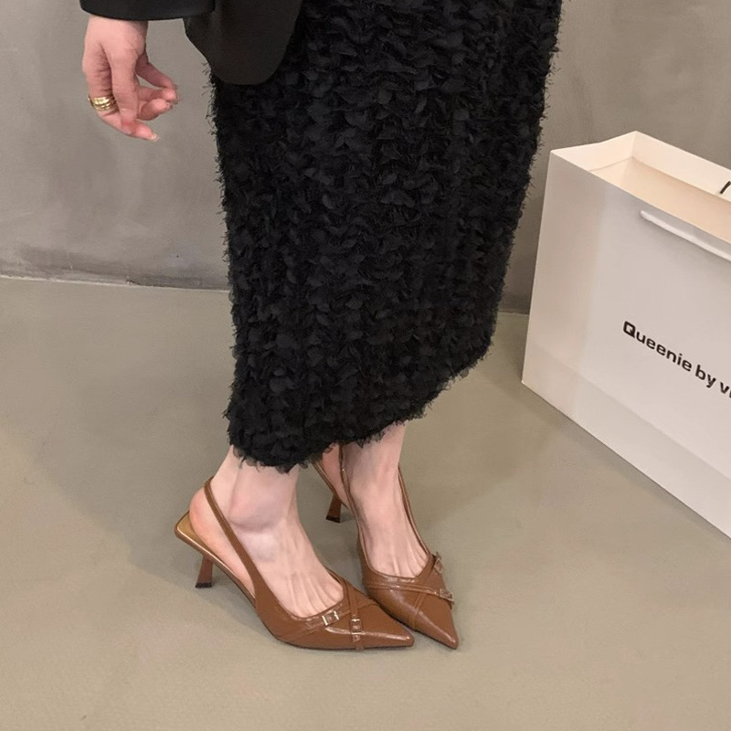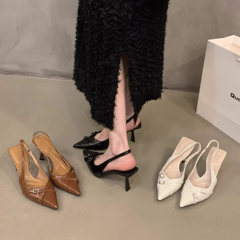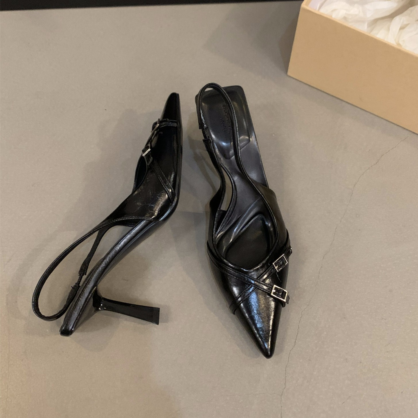小众法式黑色高跟鞋包头凉鞋女鞋子2025新款夏季气质名媛尖头单鞋