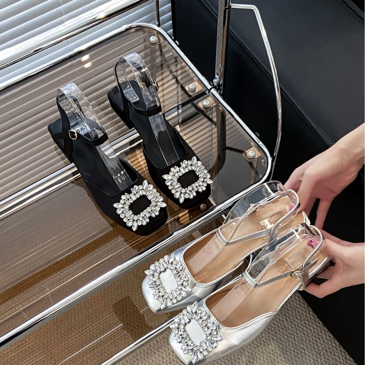 法式复古气质百搭小香风玛丽珍鞋粗跟单鞋女晚晚网红水钻包头凉鞋
