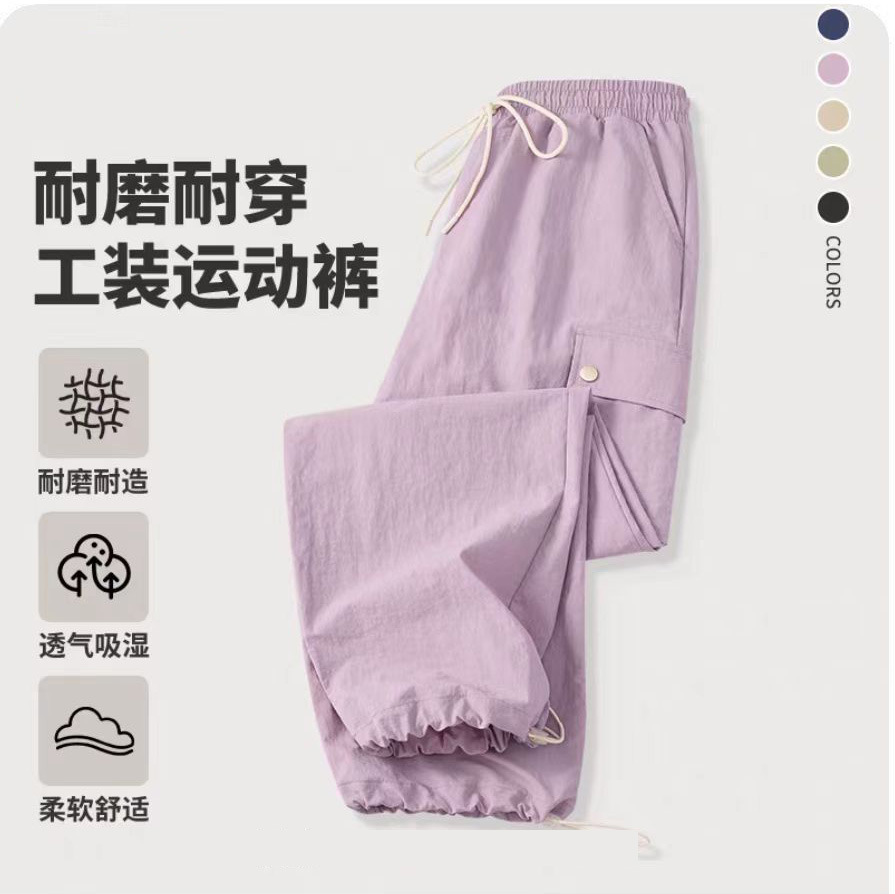 藏青色工装裤女春夏2025新款小个子酷飒风冲锋裤速干运动裤束脚裤