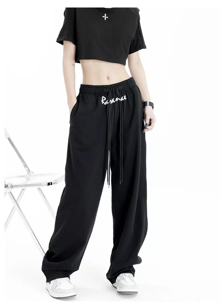 跨境东南亚黑色运动休闲裤女设计感小众秋季大码阔腿裤香蕉裤卫裤