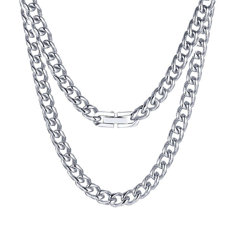 欧美男士不锈钢项链 珠宝扣钛钢圆磨项链ins嘻哈潮牌古巴链子