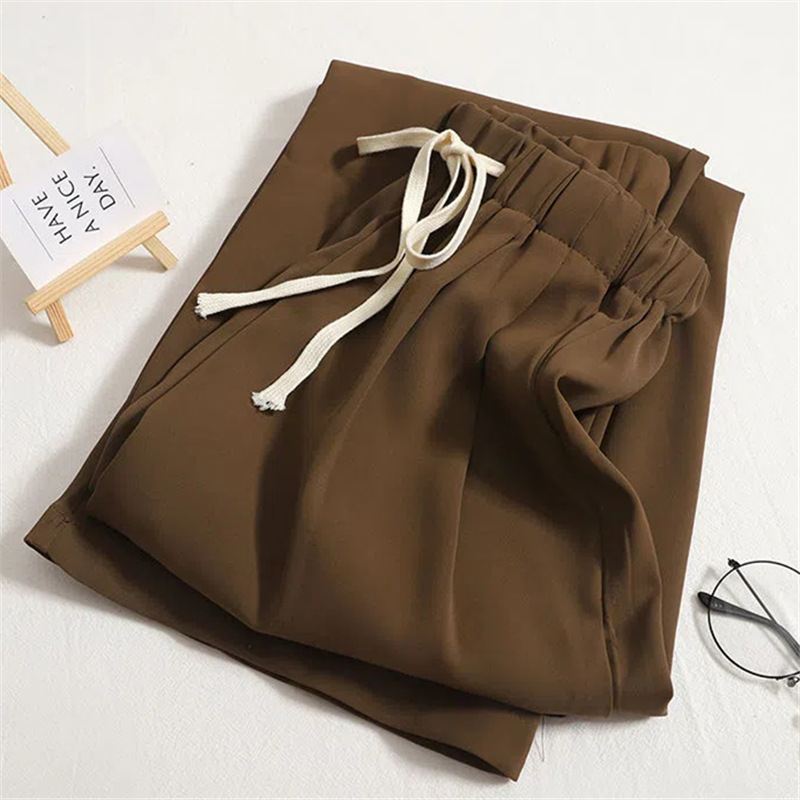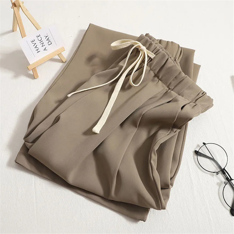 高级感窄版冰丝西装阔腿裤女春夏宽松垂感拖地直筒大码休闲裤秋冬