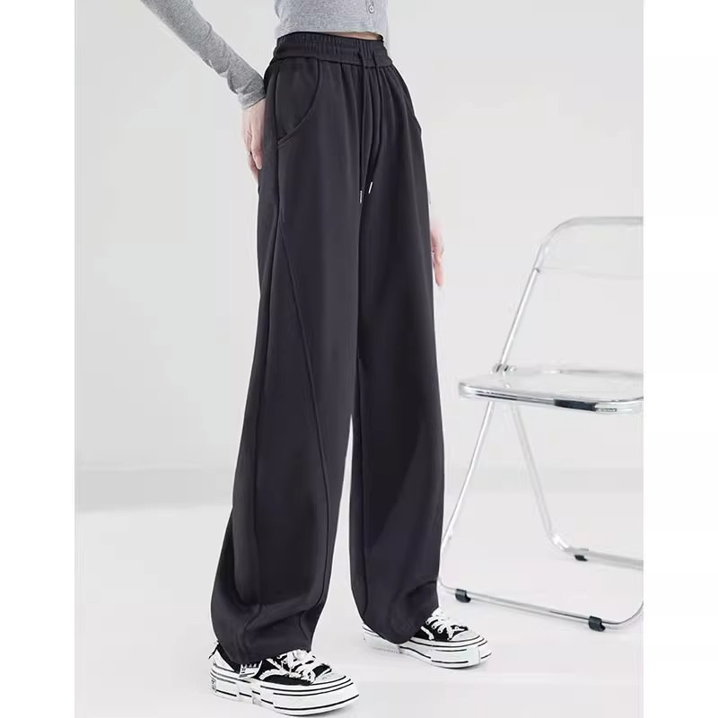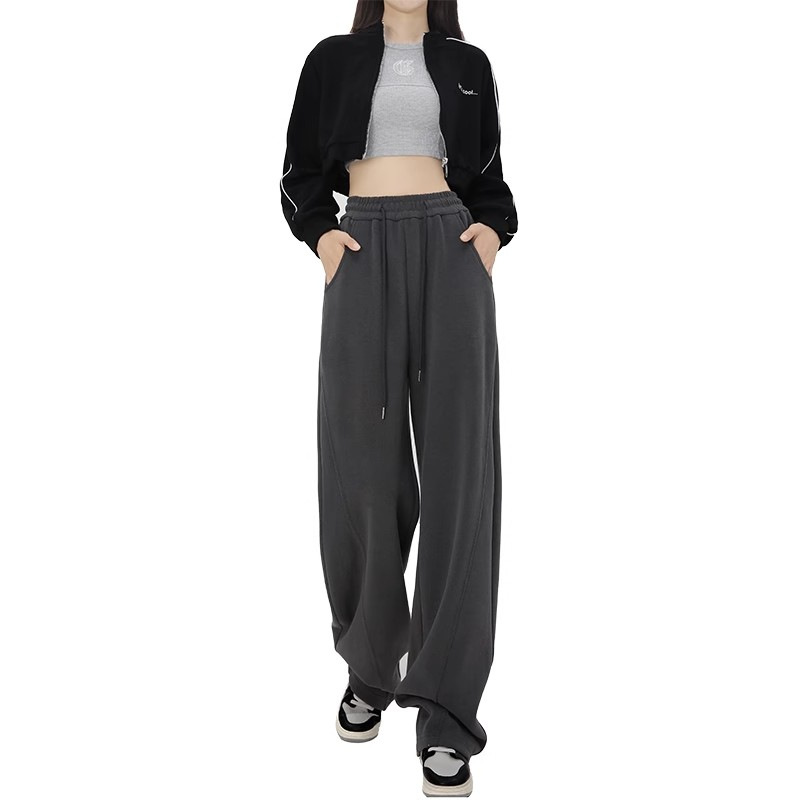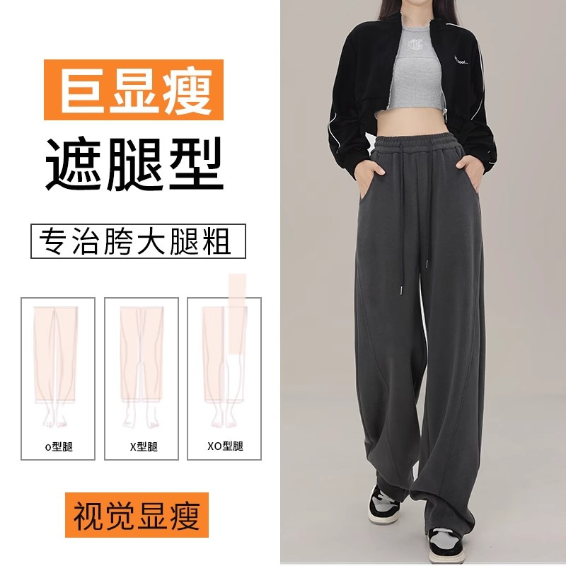 窄版灰色运动裤女春夏新款高腰垂感直筒香蕉裤休闲春秋阔腿裤