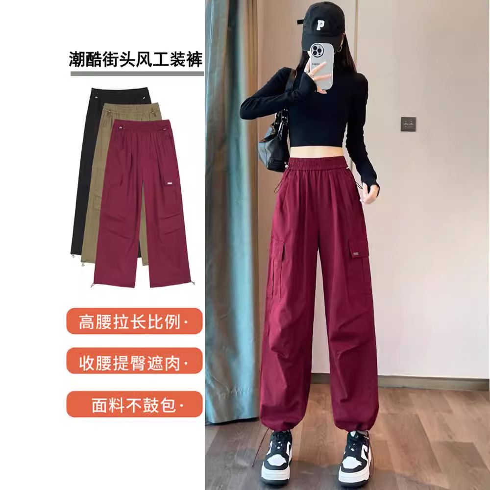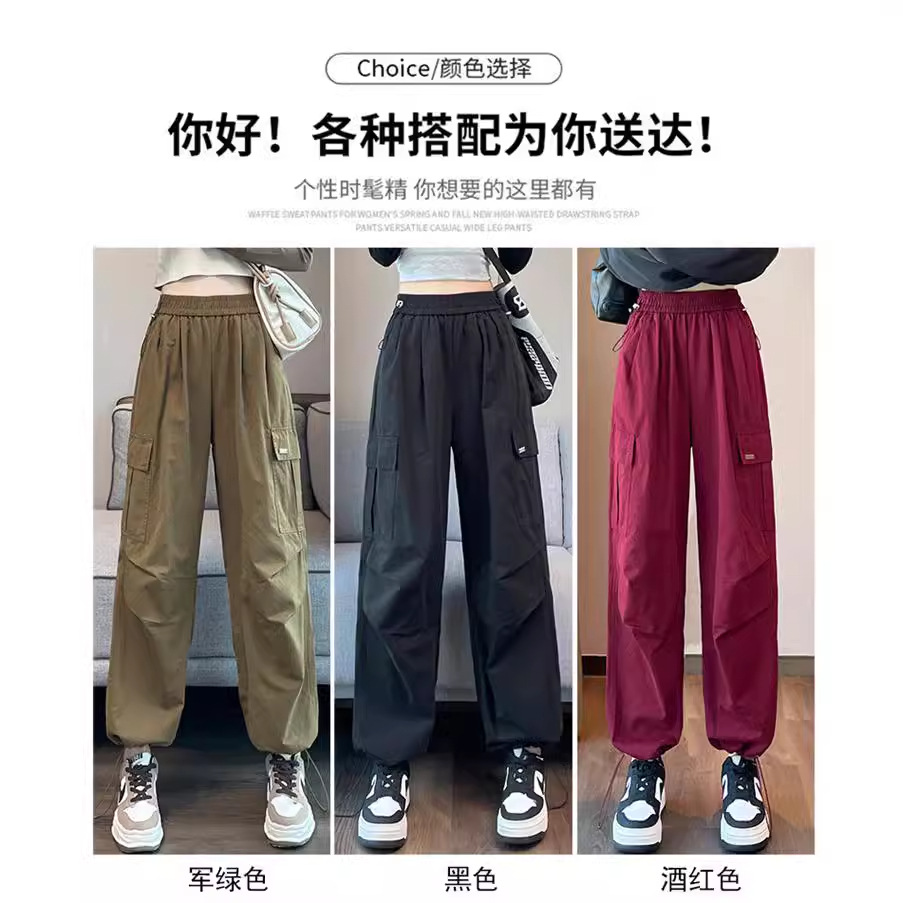 黑色工装裤女款秋季爵士舞欧货小个子宽松休闲直筒冲锋裤薄款加长