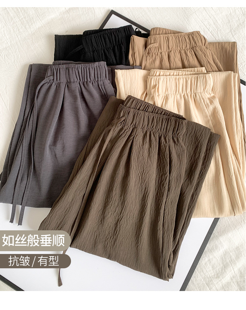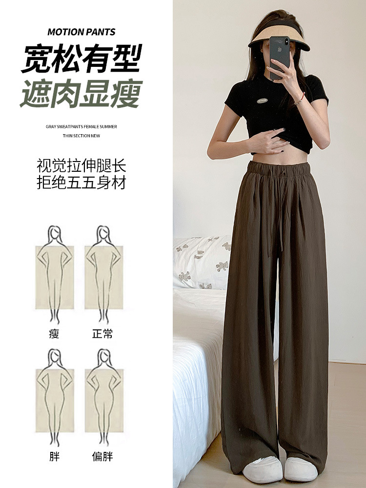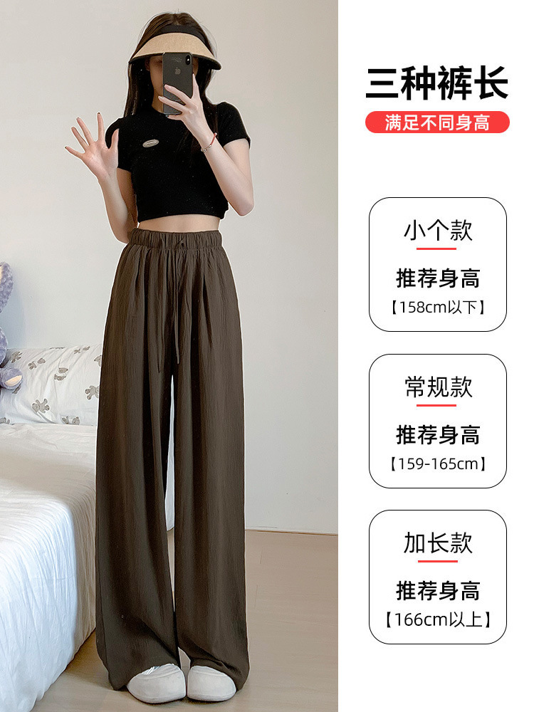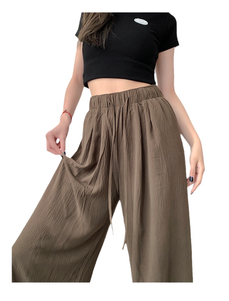 棕色冰丝女夏季薄款高腰休闲百搭直筒小个子棉麻防晒褶皱山本