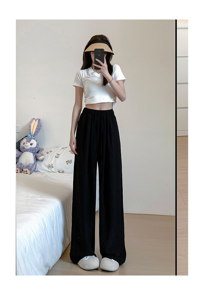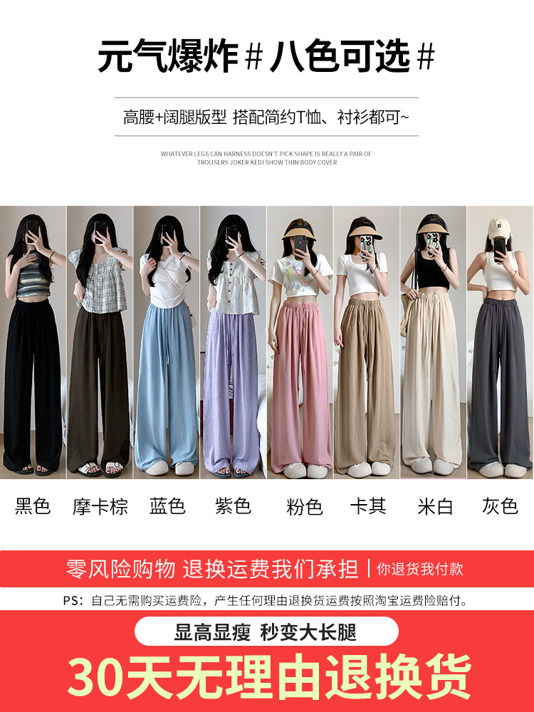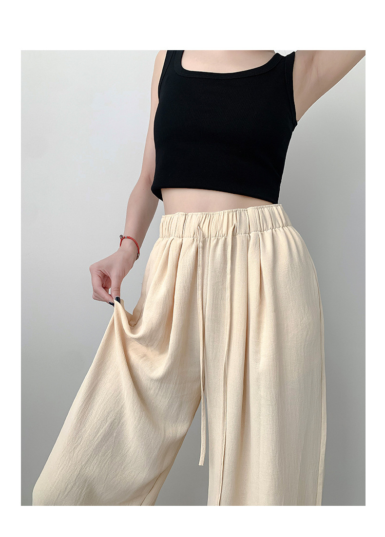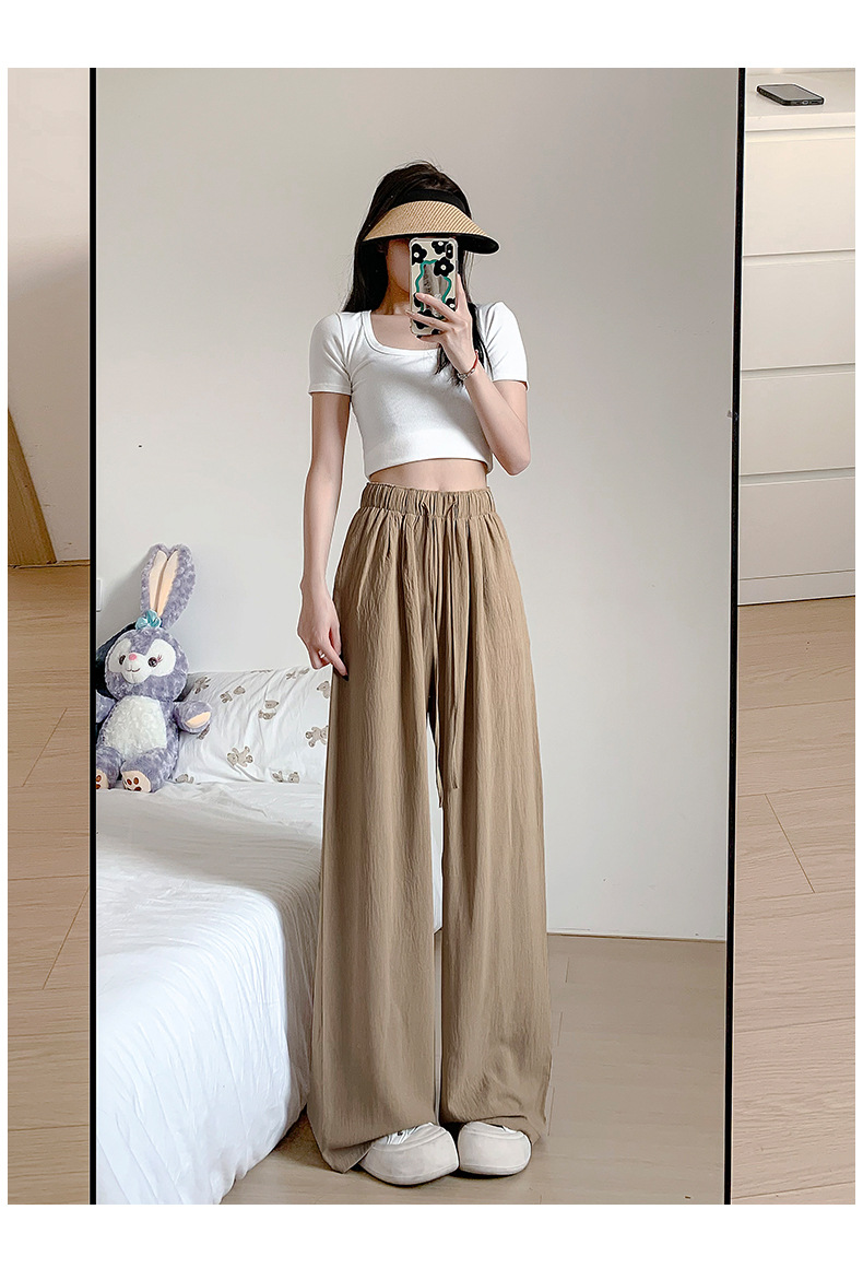 棕色冰丝女夏季薄款高腰休闲百搭直筒小个子棉麻防晒褶皱山本