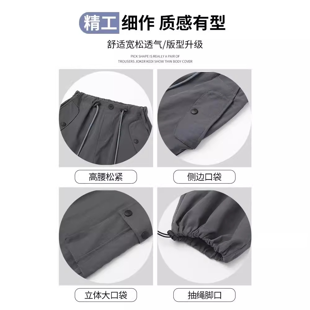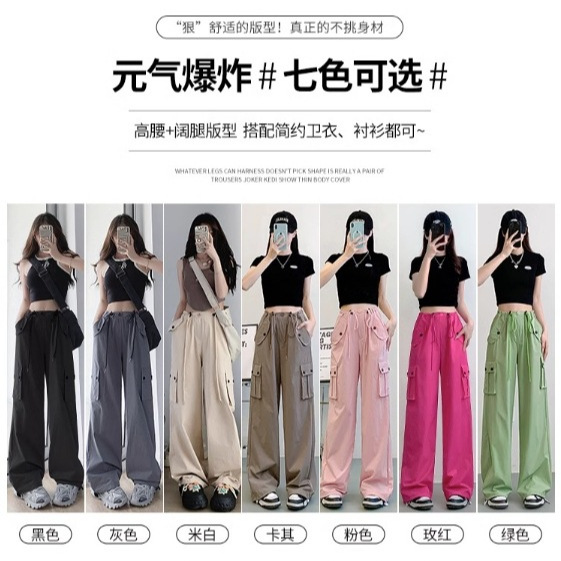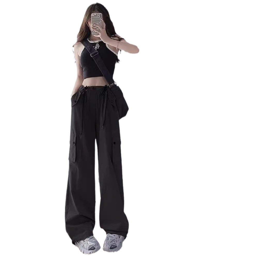 黑色美式工装裤女春秋季薄款高腰显瘦休闲裤小个子宽松束脚运动裤