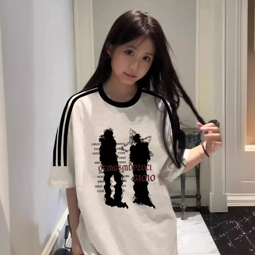 重磅纯棉美式复古三条杠短袖t恤女新款夏季设计感半袖情侣上衣潮